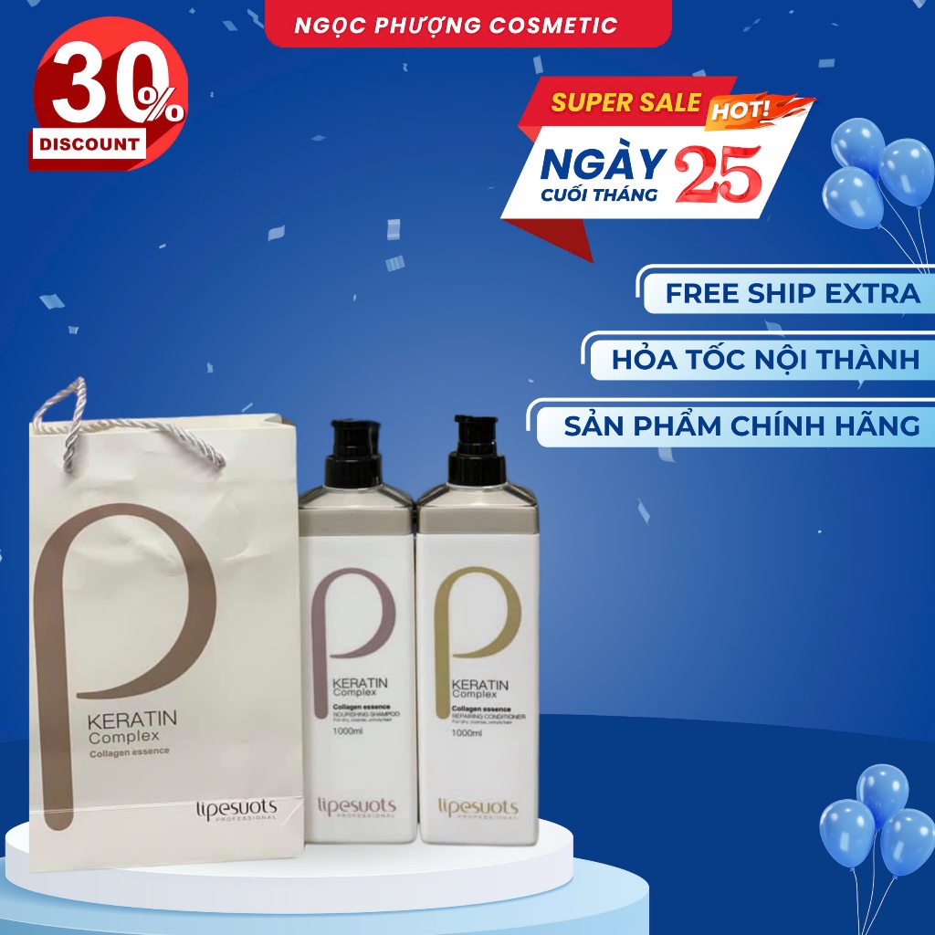 Dầu gội đầu P KERATIN COMPLEX 1000ml cặp dầu gội xả phục hồi hư tổn giảm rụng tóc chính hãng