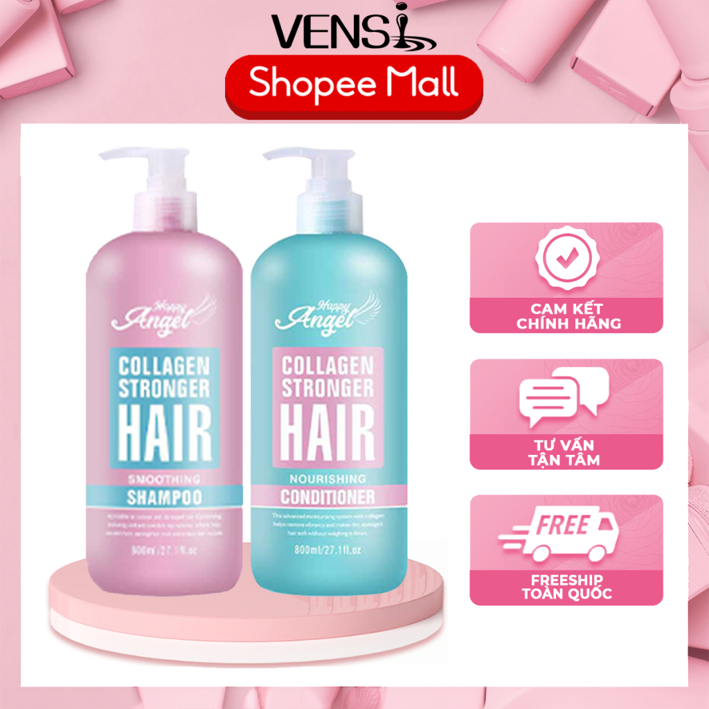 Dầu gội Collagen HAPPY ANGEL 800mlx2 phục hồi tóc hư tổn khô xơ siêu mềm mượt hương nước hoa