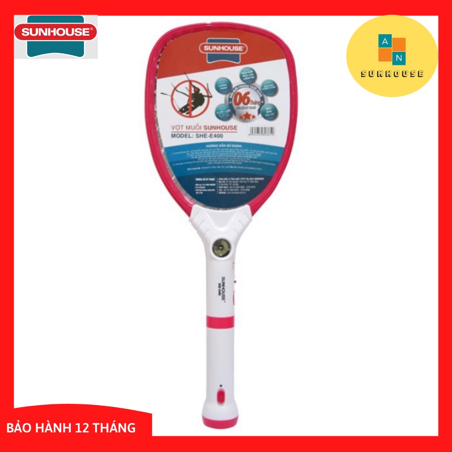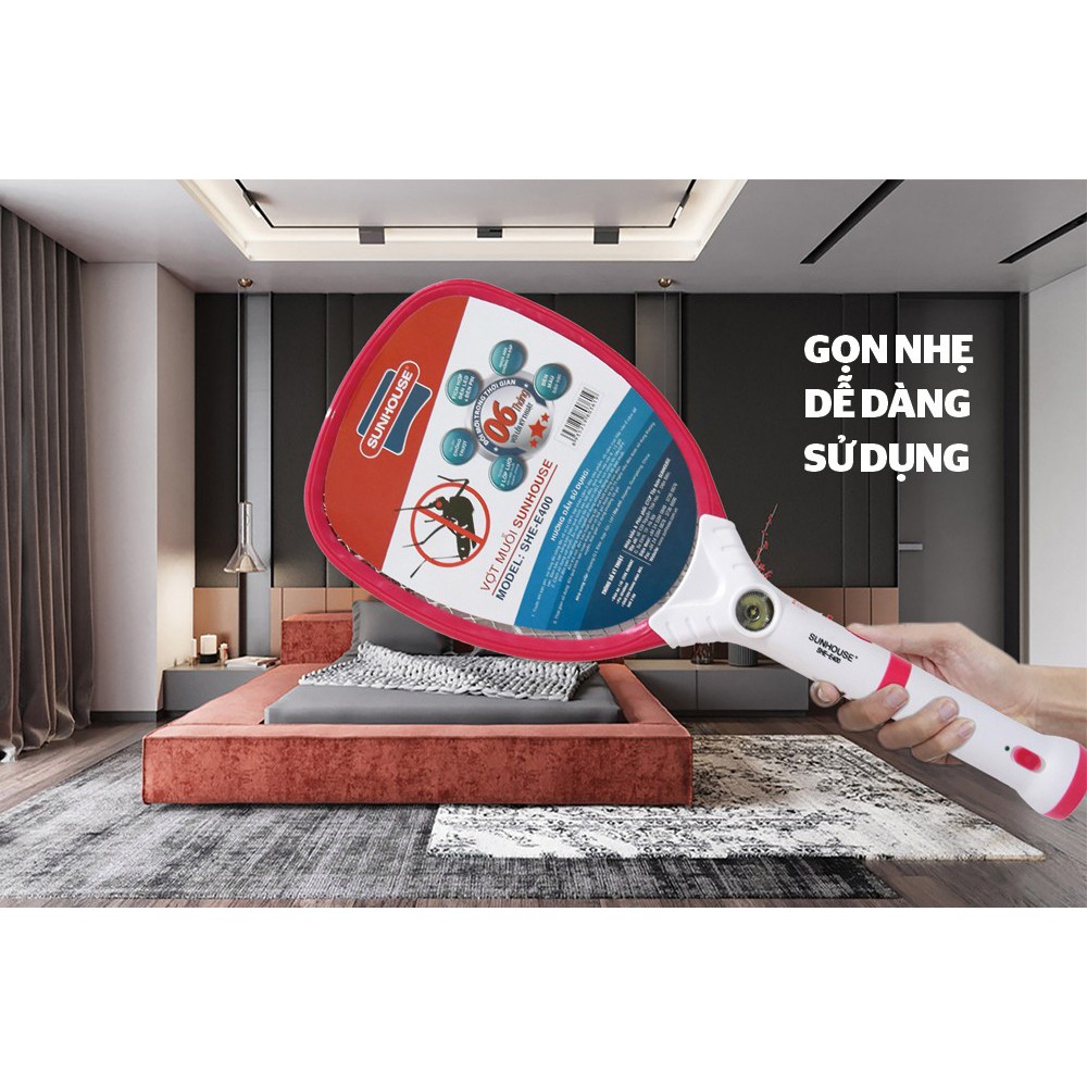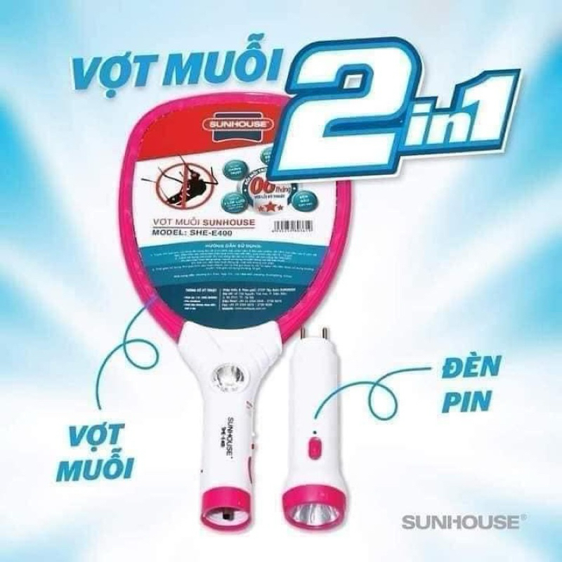 Vợt muỗi SUNHOUSE SHE - E400, đèn pin tháo rời