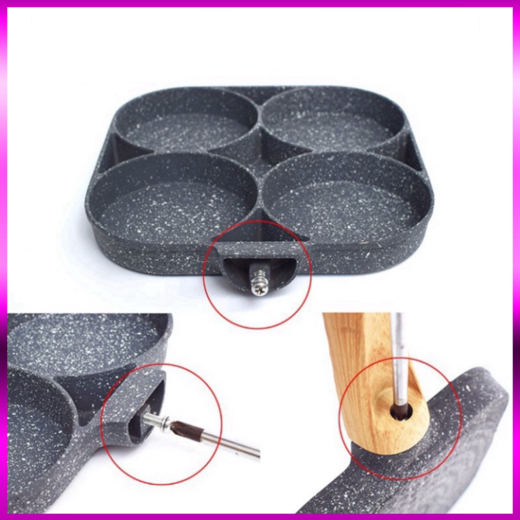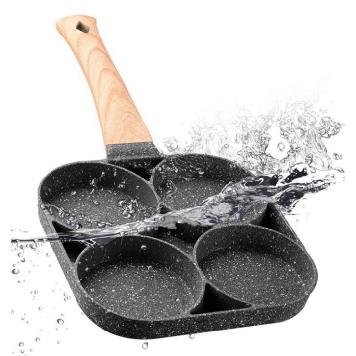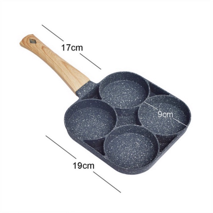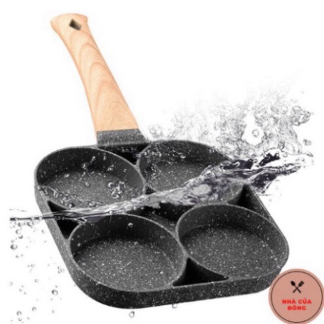 Khuôn Chảo Chiên Rán Trứng Làm Bánh 4 Ngăn 4 Lỗ Chống Dính - Chống Dính Tay Cầm Gỗ 4 ngăn nấu được cả bếp từ và bếp gas