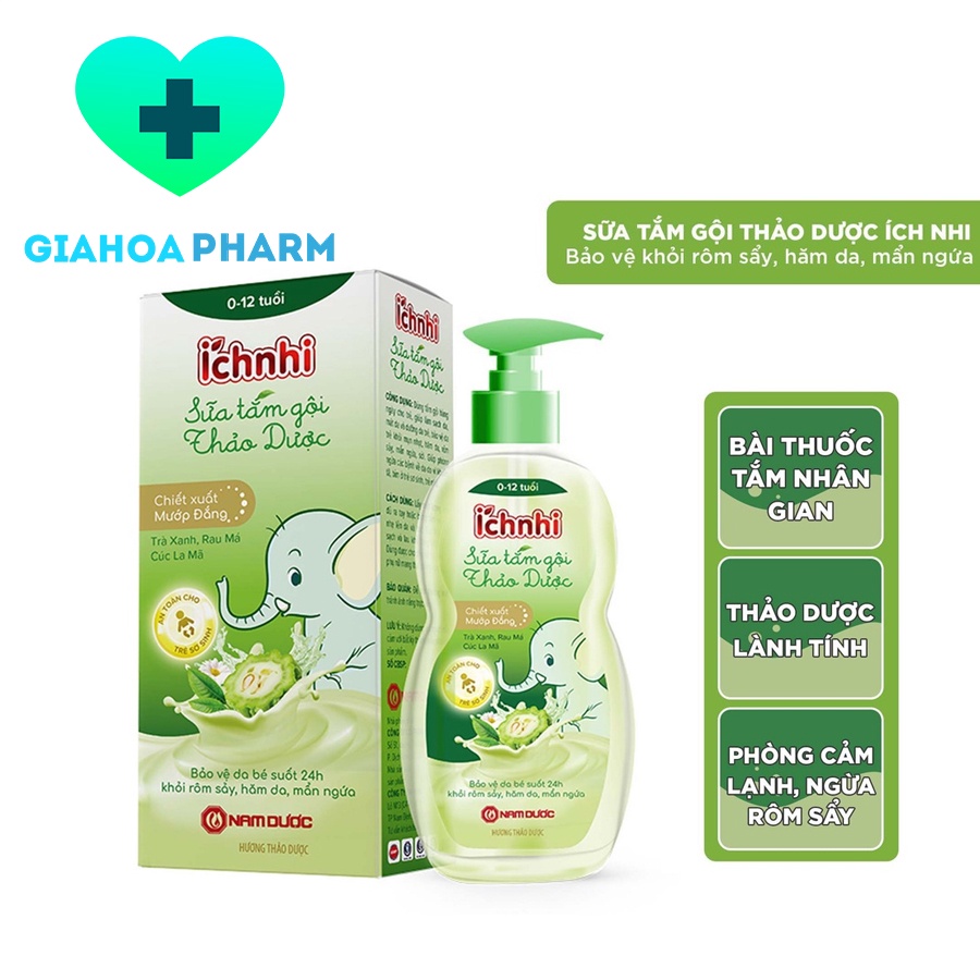 Sữa tắm gội thảo dược Ích Nhi sơ sinh, trẻ em, phòng cảm lạnh, ngừa rôm sẩy, hăm tã, mẩn ngứa, sởi, dưỡng da bé mềm mịn