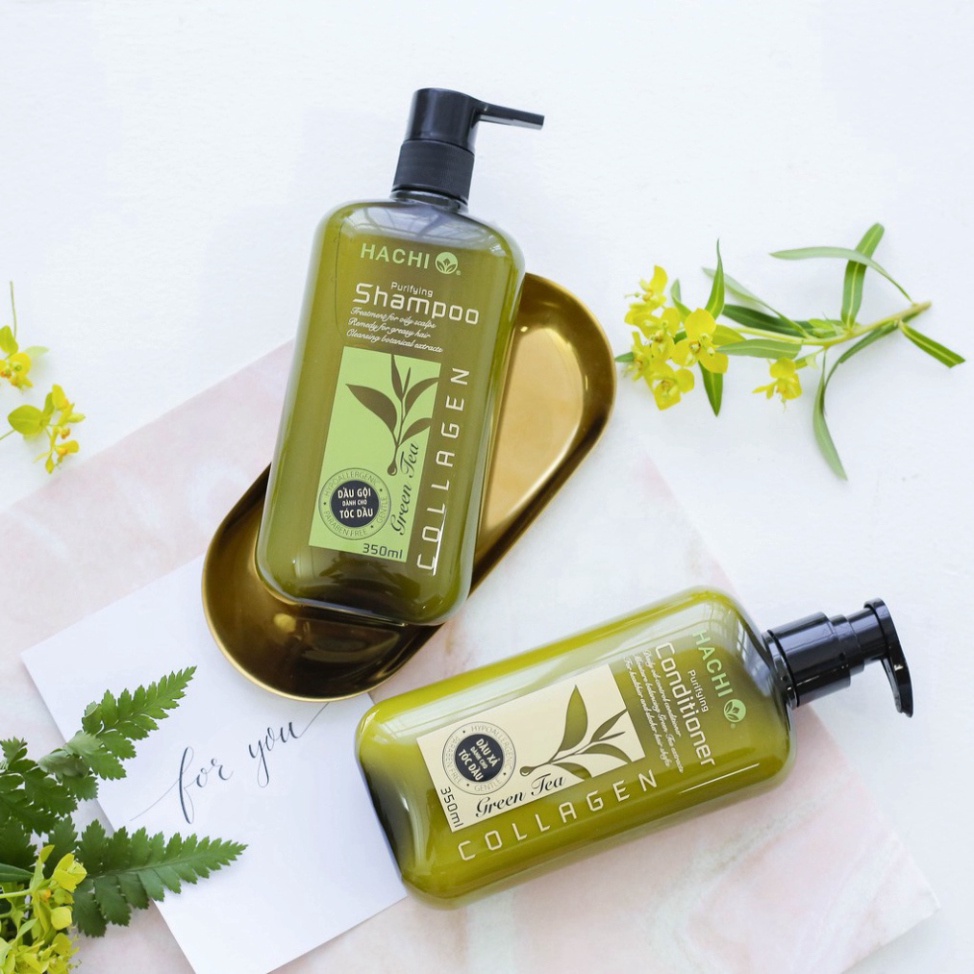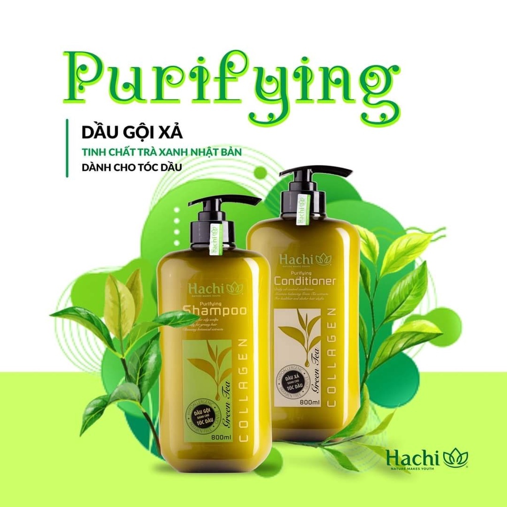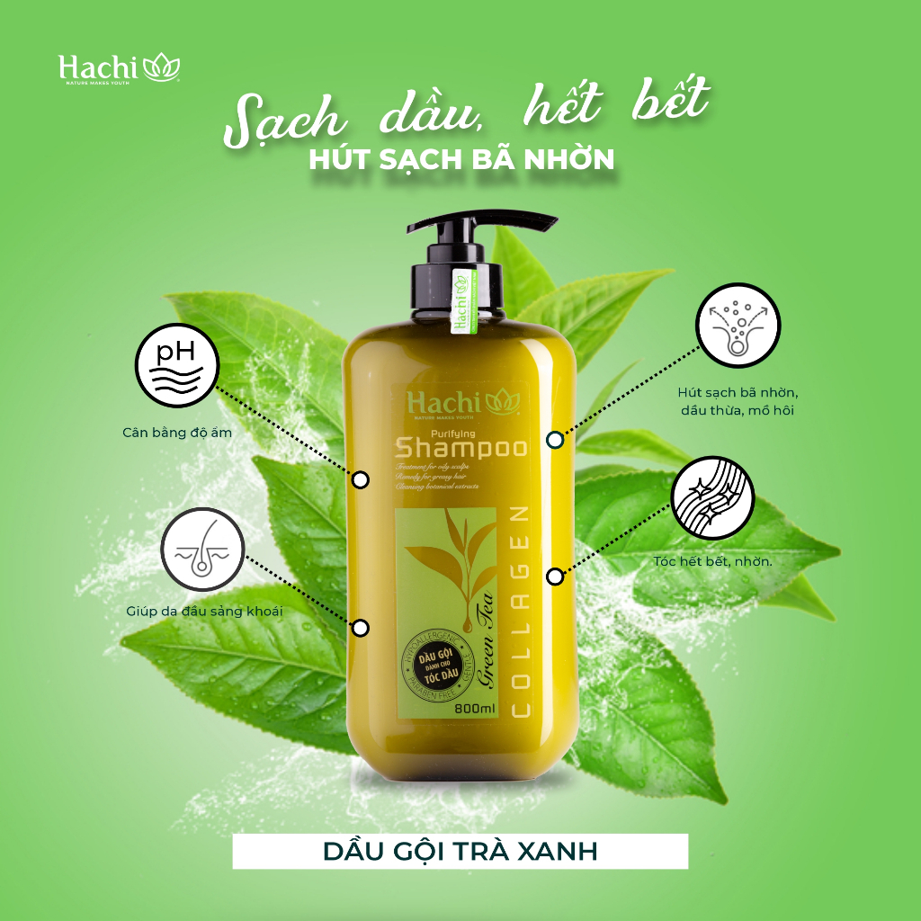 Cặp dầu gội đầu Hachi trà xanh dành cho tóc dầu khắc phục tình trạng dư thừa dầu chiết xuất tự nhiên