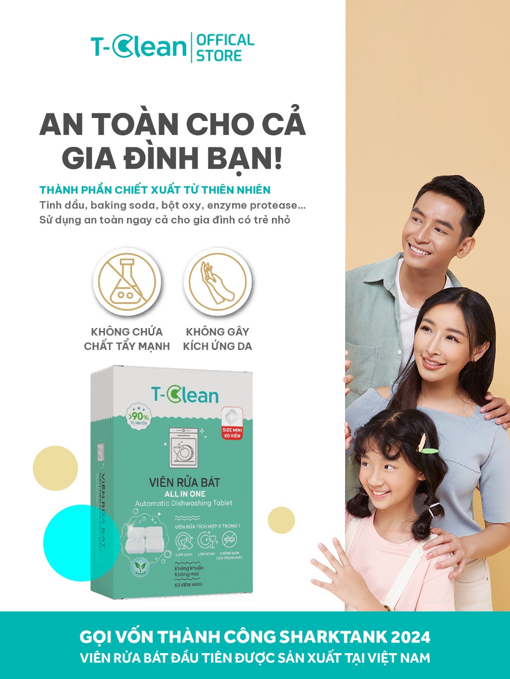 Hộp 60 Viên Rửa Bát (mini) TClean dành cho máy rửa bát sáng bóng, kháng khuẩn, khử mùi 8g/viên.