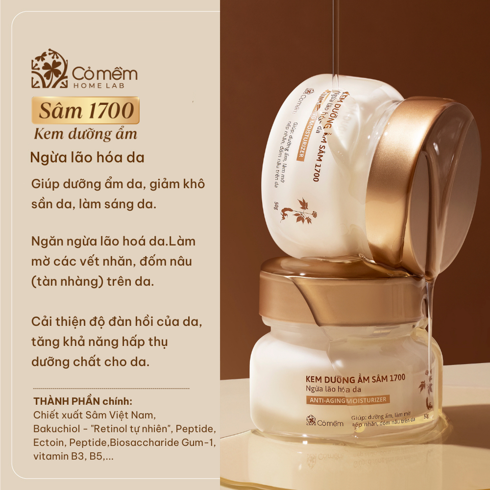 Combo 3 Bước Sữa Rửa Mặt Serum Và Kem Dưỡng Sâm 1700 Ngừa Lão Hoá Da Cỏ Mềm
