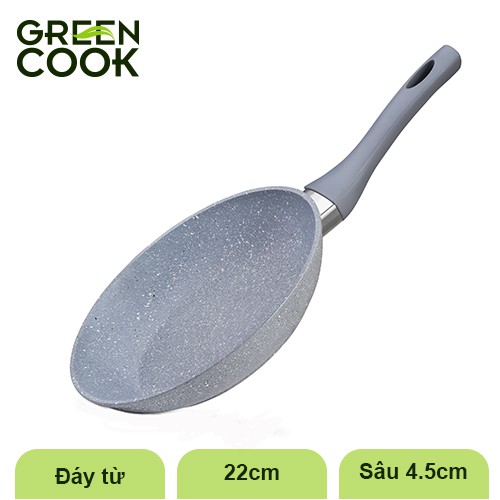 Bộ 3 Chảo vân đá chống dính PFOA free đáy từ Green Cook GCP02-22,26,28cm