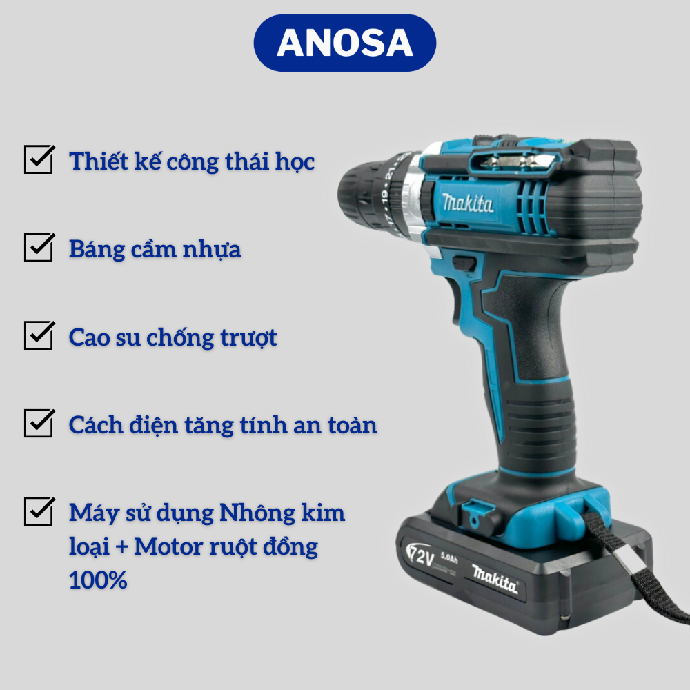 Máy khoan pin cầm tay Makita 72v, máy bắn vít 3 chức năng tặng phụ kiện 24 chi tiết