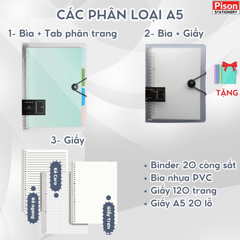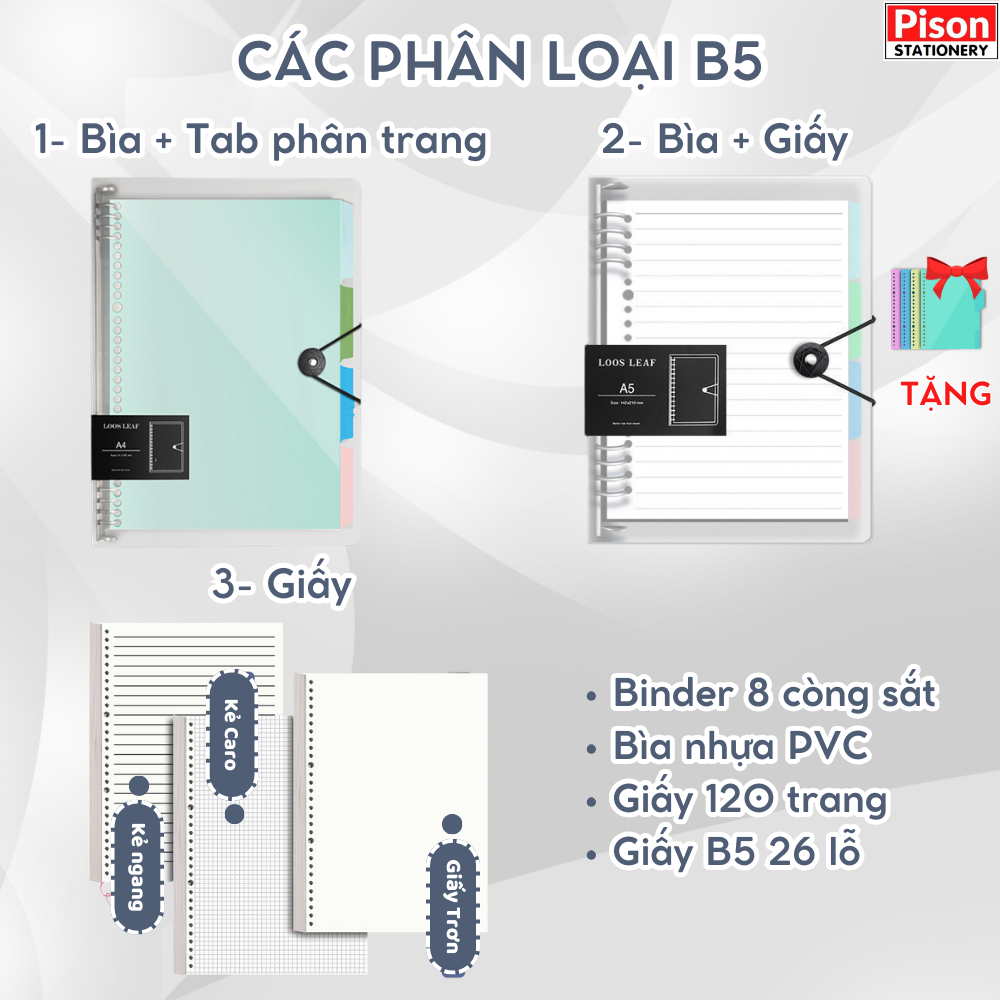 Sổ còng A4 B5 A5 binder 8 còng ruột giấy refill làm planner bullet journal take notes Pison
