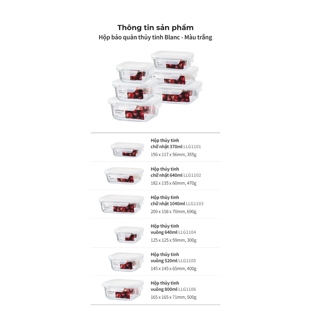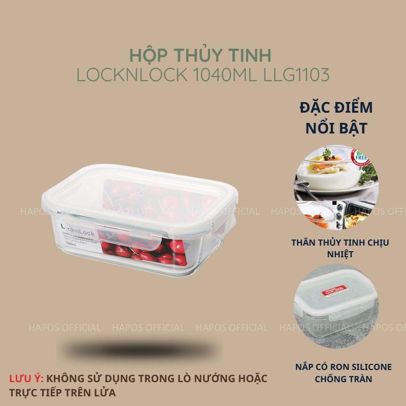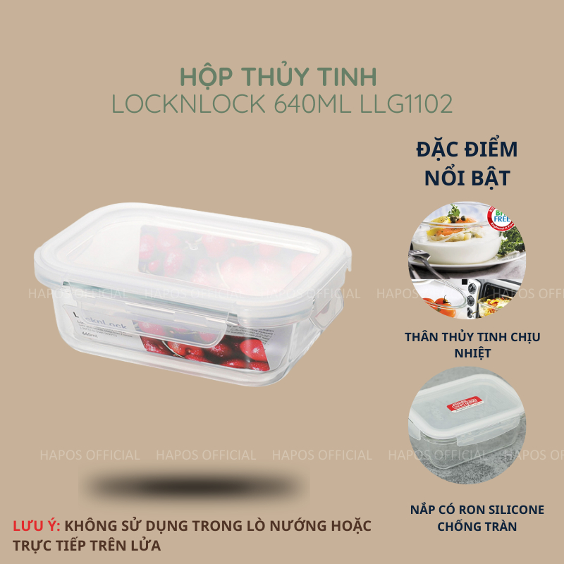 Hộp thủy tinh LocknLock chịu nhiệt cao BLANC bảo quản thực phẩm giữ tươi lâu, nắp khóa kín chống tràn - Chính Hãng HAPOS