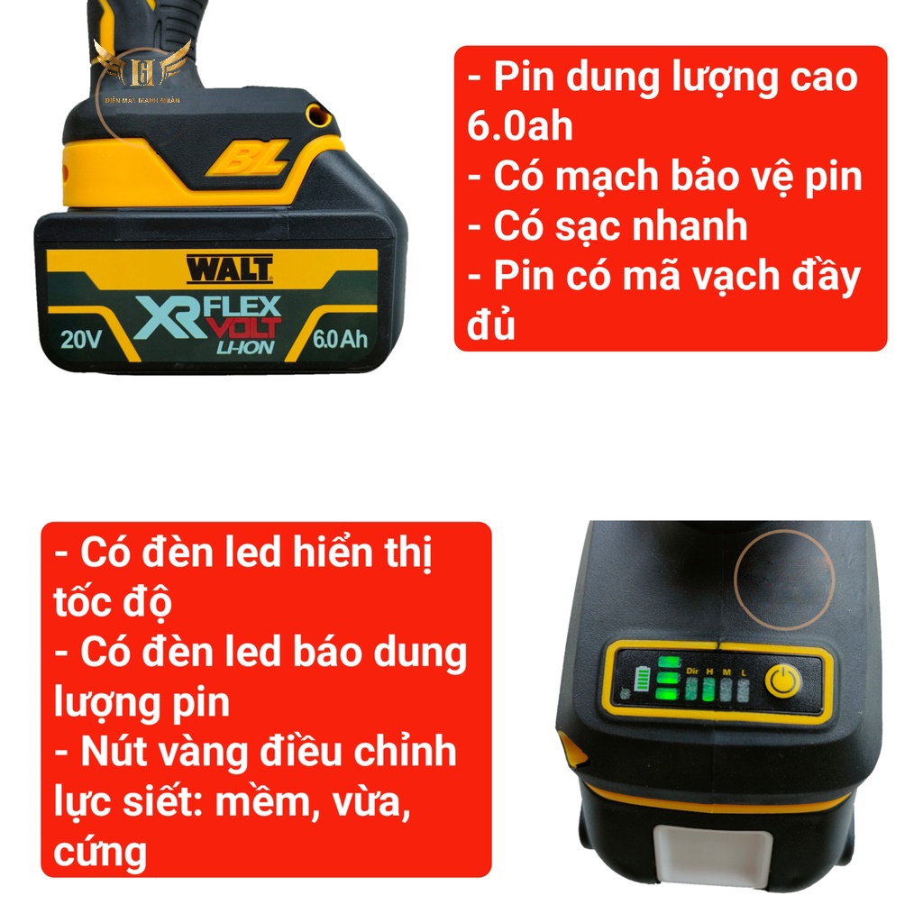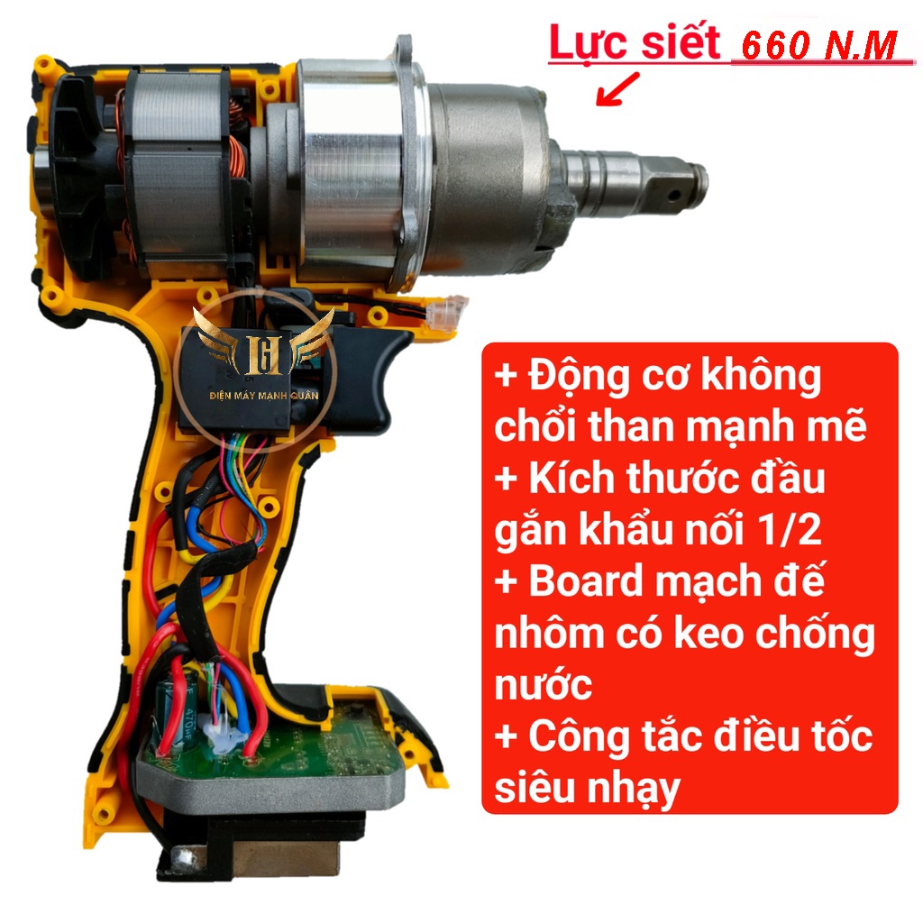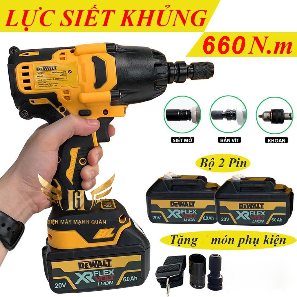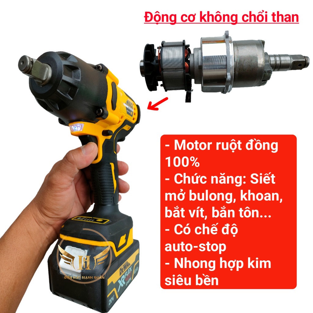 [Lực Siết 980Nm] Máy Siết Bulong DEWAT Máy Bắn Ốc Vặn Vít Đầu Đặc 1/2 Động Cơ Không Than Chuyên Mở Ôc Nồi Xe Máy Tay Ga