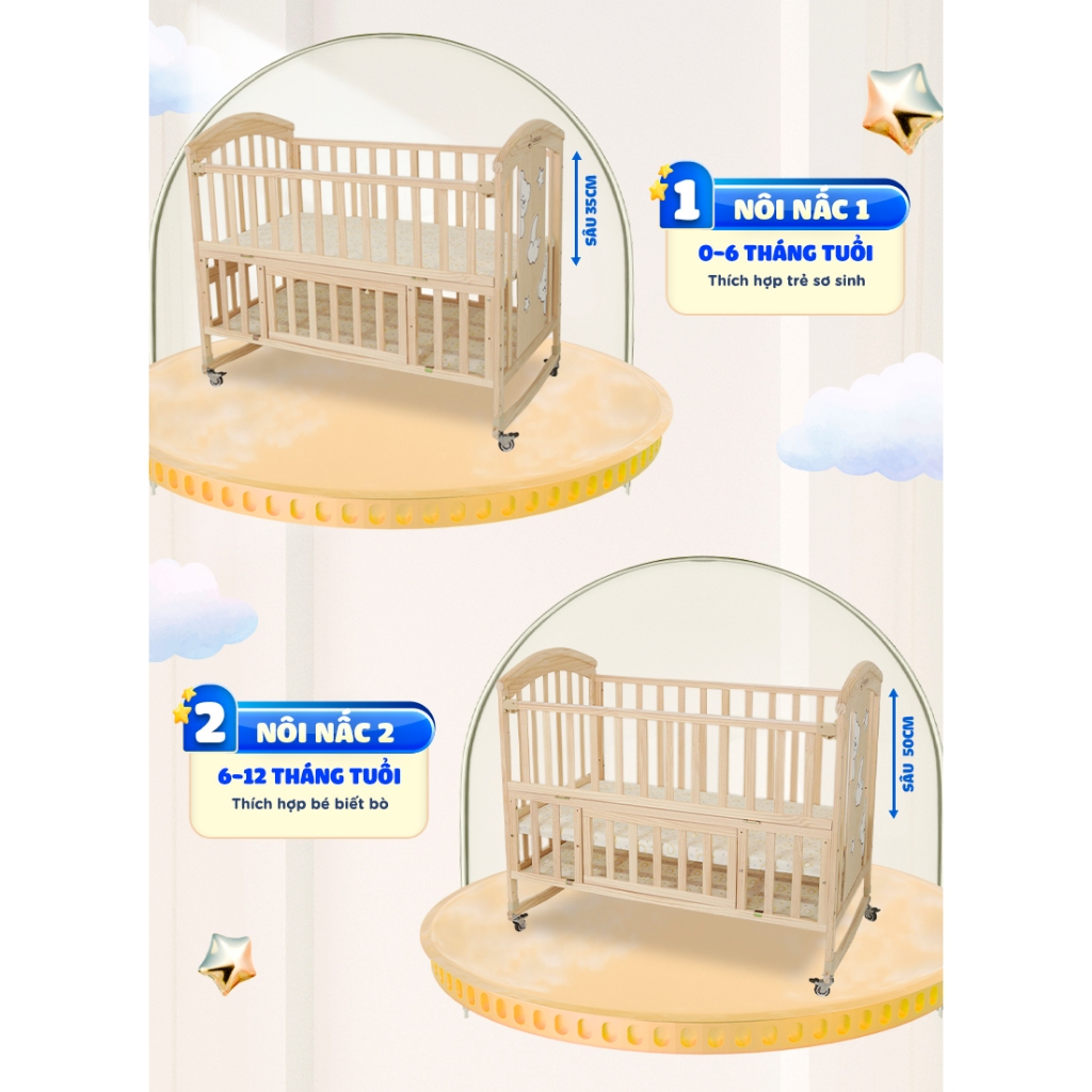 Nôi cũi cho bé Chilux Peace Natural - Đa năng 6 chế độ tiện lợi cho mẹ và bé - Bảo hành 3năm