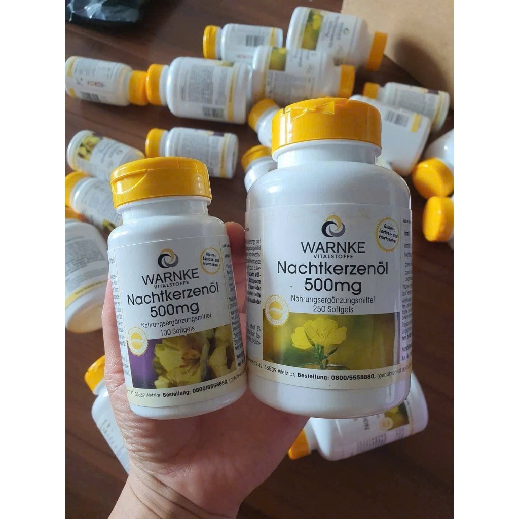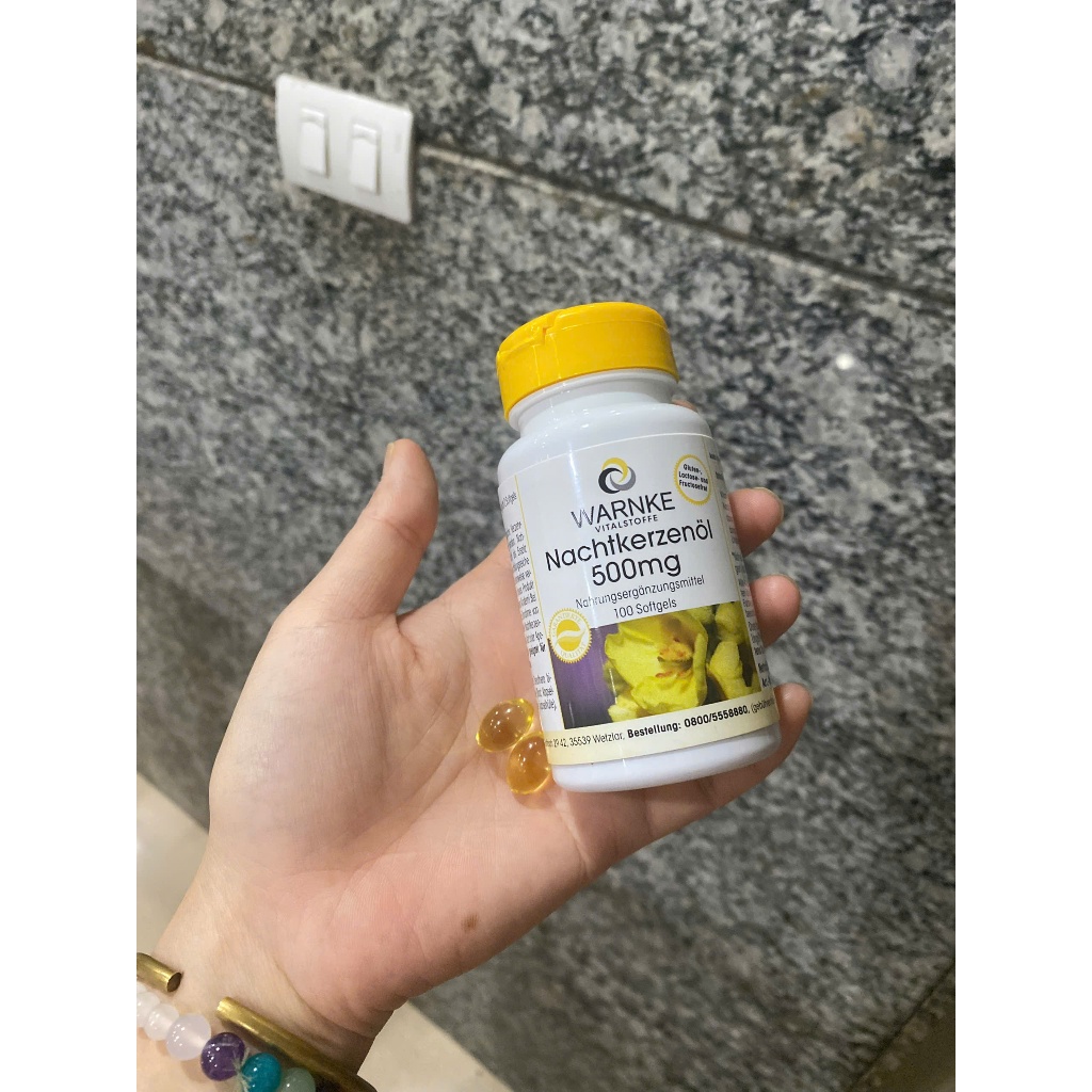 Viên uống Hoa Anh Thảo Đức Warnke Nachtkerzenol 500mg giúp làm đẹp da tóc cân bằng nội tiết tốt cho tim mạch
