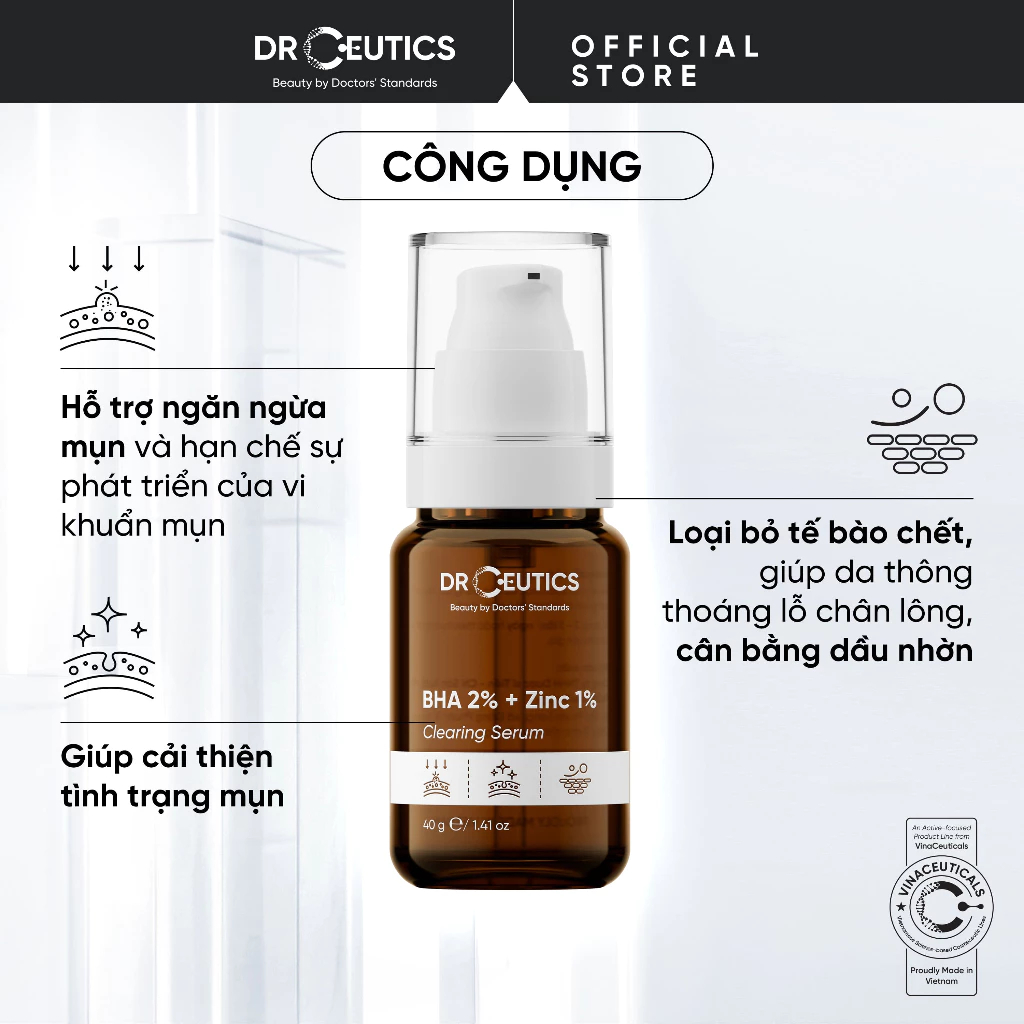 Serum DrCeutics BHA 2% + ZinC 1% se lỗ chân lông giảm mụn