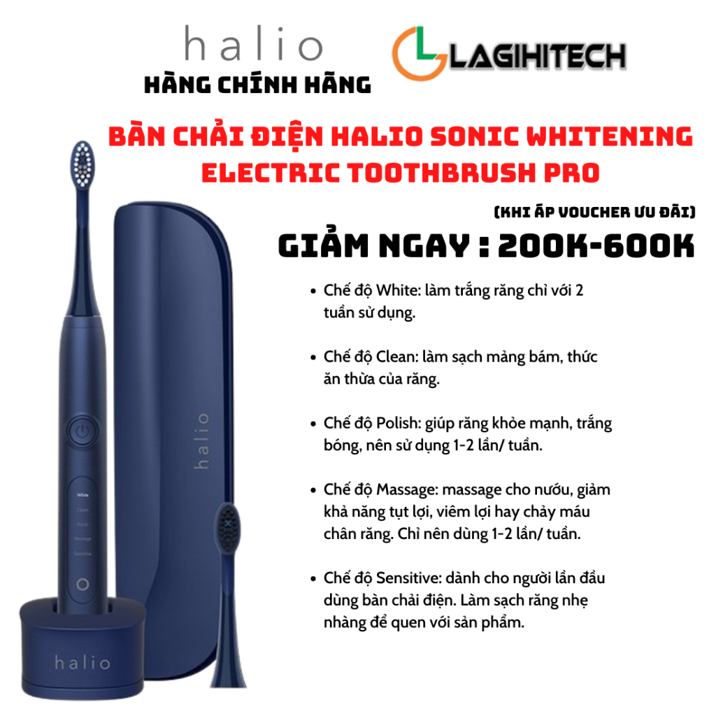 [LIVE] Bàn Chải Điện Halio Sonic Whitening PRO Toothbrush Bảo hành 1 năm - Hàng Chính Hãng