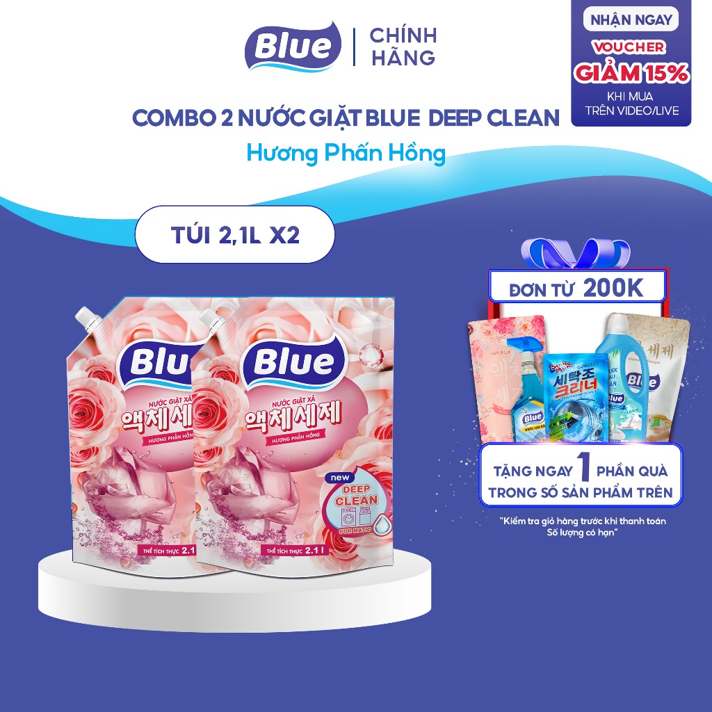 Nước Giặt Blue Hàn Quốc can/túi 2.1L hương nước hoa, thảo mộc, phấn hồng, thanh xuân - Giặt xả Sạch Sâu