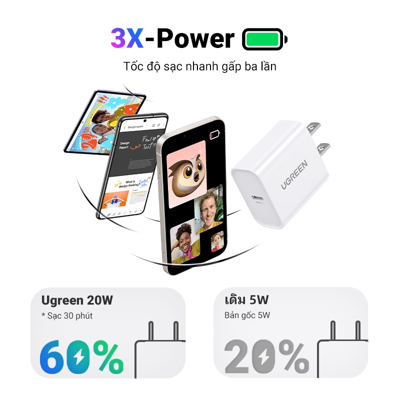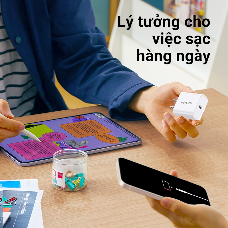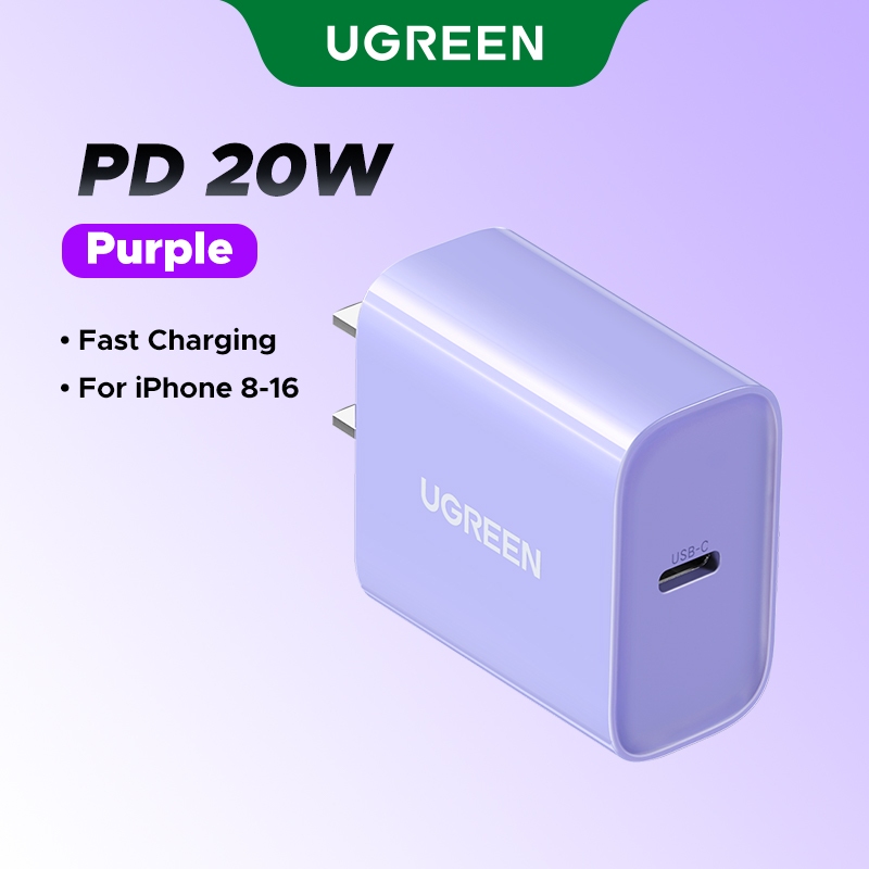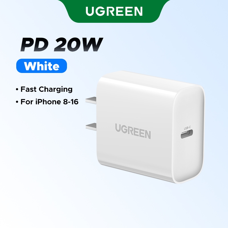 Bộ sạc USB C UGREEN 20W PD Khối sạc nhanh Bộ sạc tường USB-C Tương thích với iPhone 16 / 16 Plus / 15 Pro / 15 Pro Max / 14 / 13 / 12, Pixel, Galaxy S23 / S22 / S21 / S20 / Note 10,