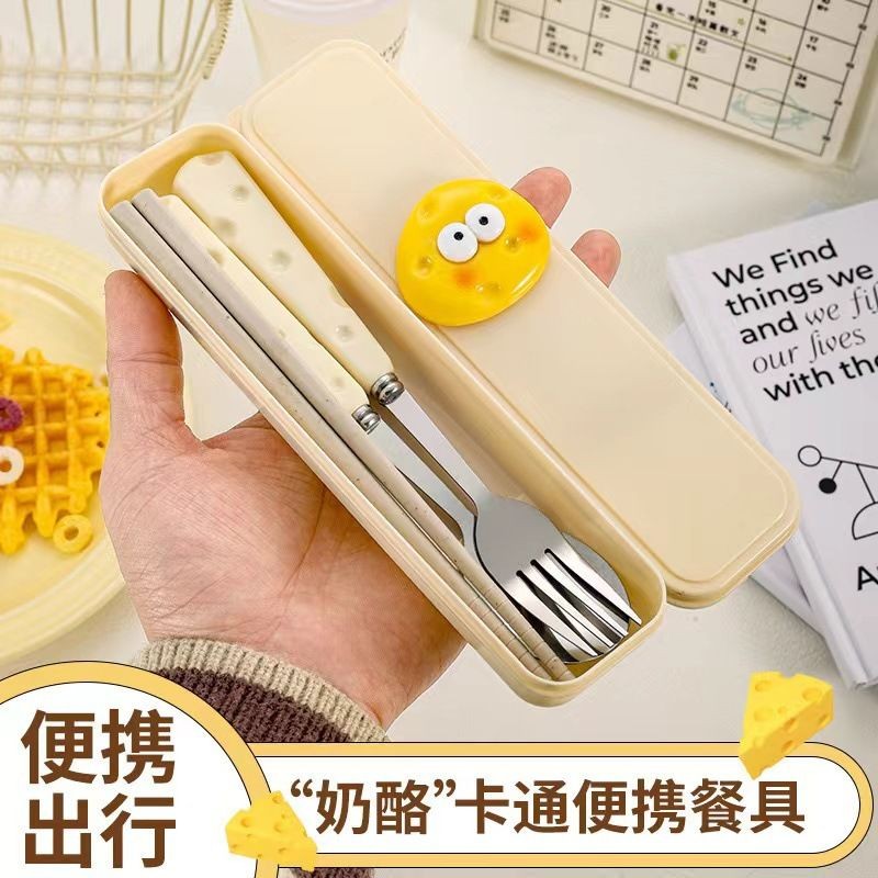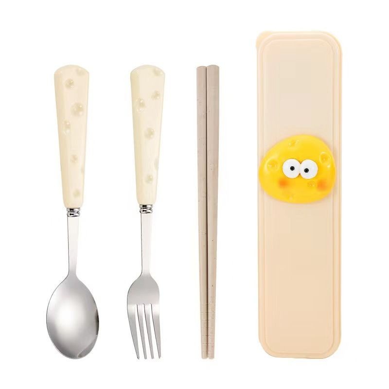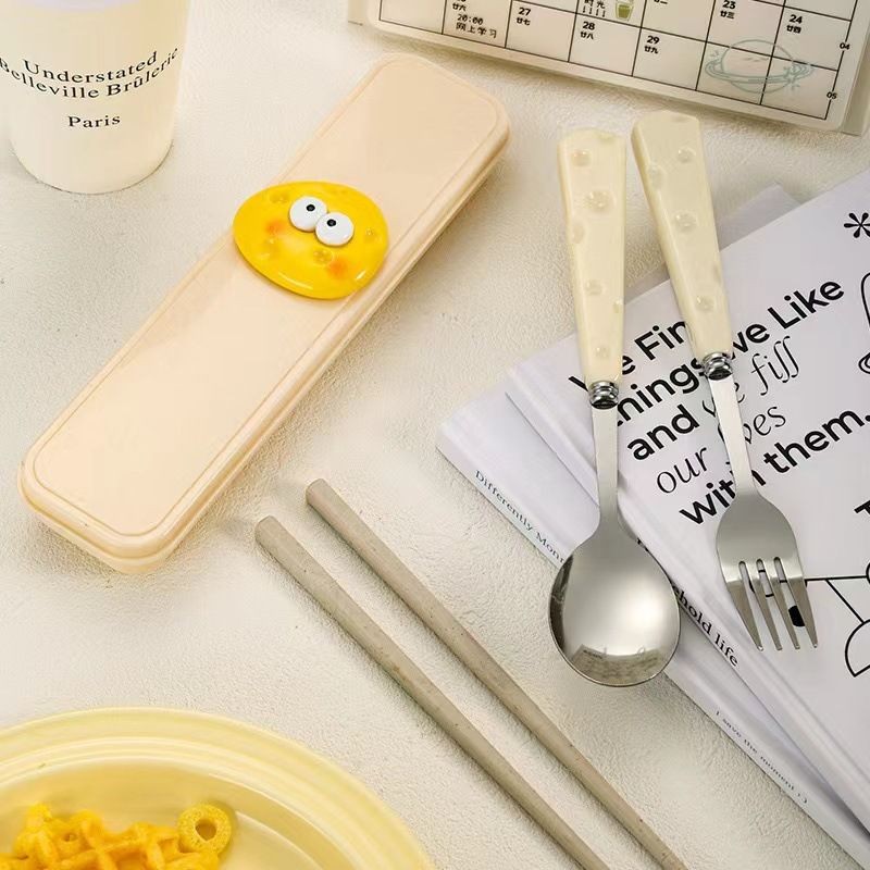 Bộ dụng cụ ăn uống kèm hộp đựng họa tiết phô mai siêu xinh