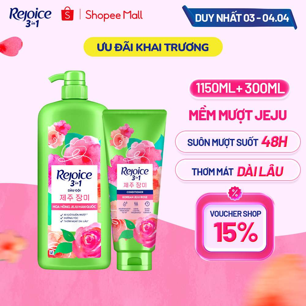[Rejoice x VHL] COMBO Dầu Gội & Dầu Xả Rejoice Thơm Mềm Mượt Jeju (1150ML + 300ML)