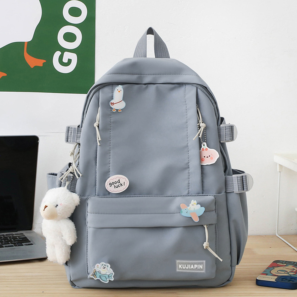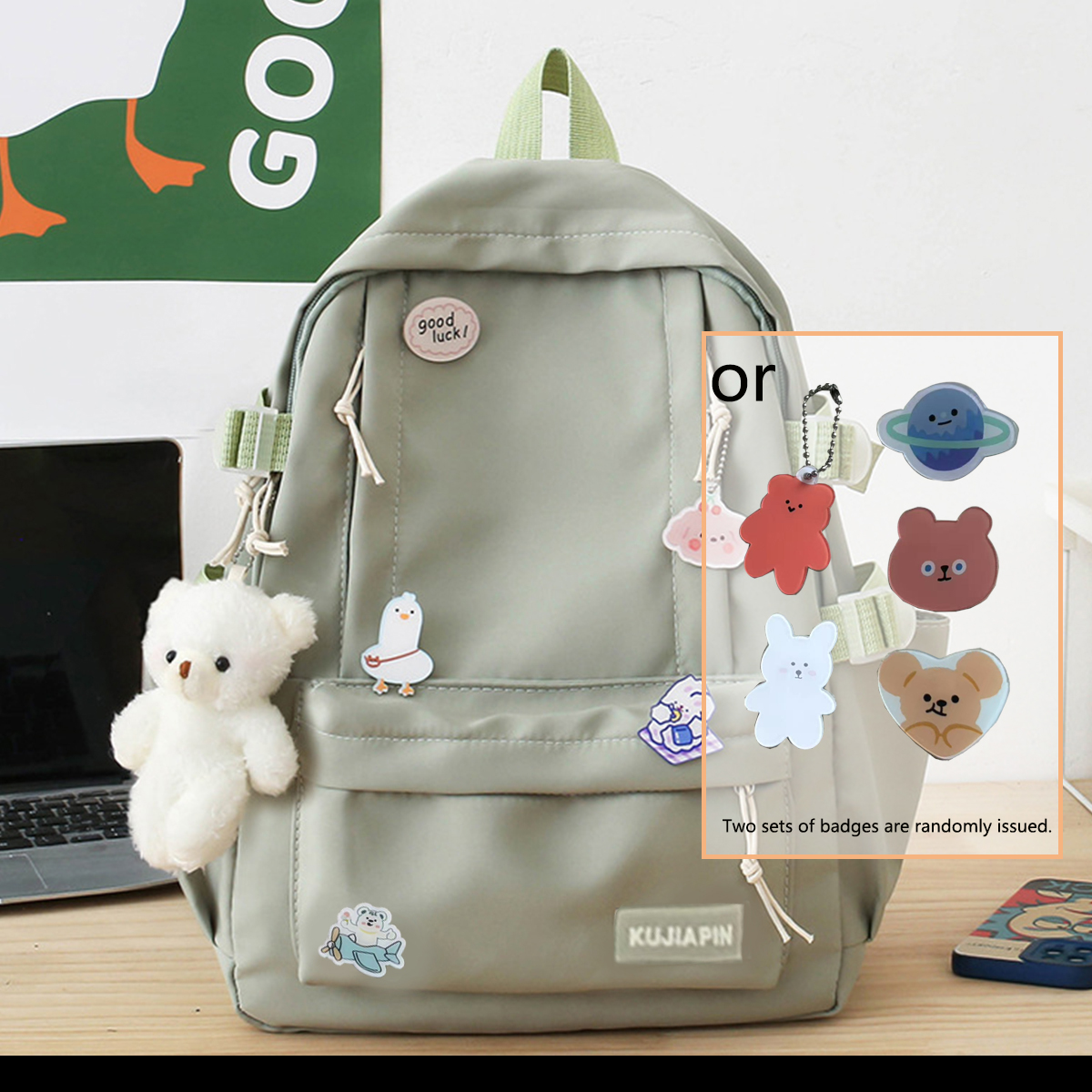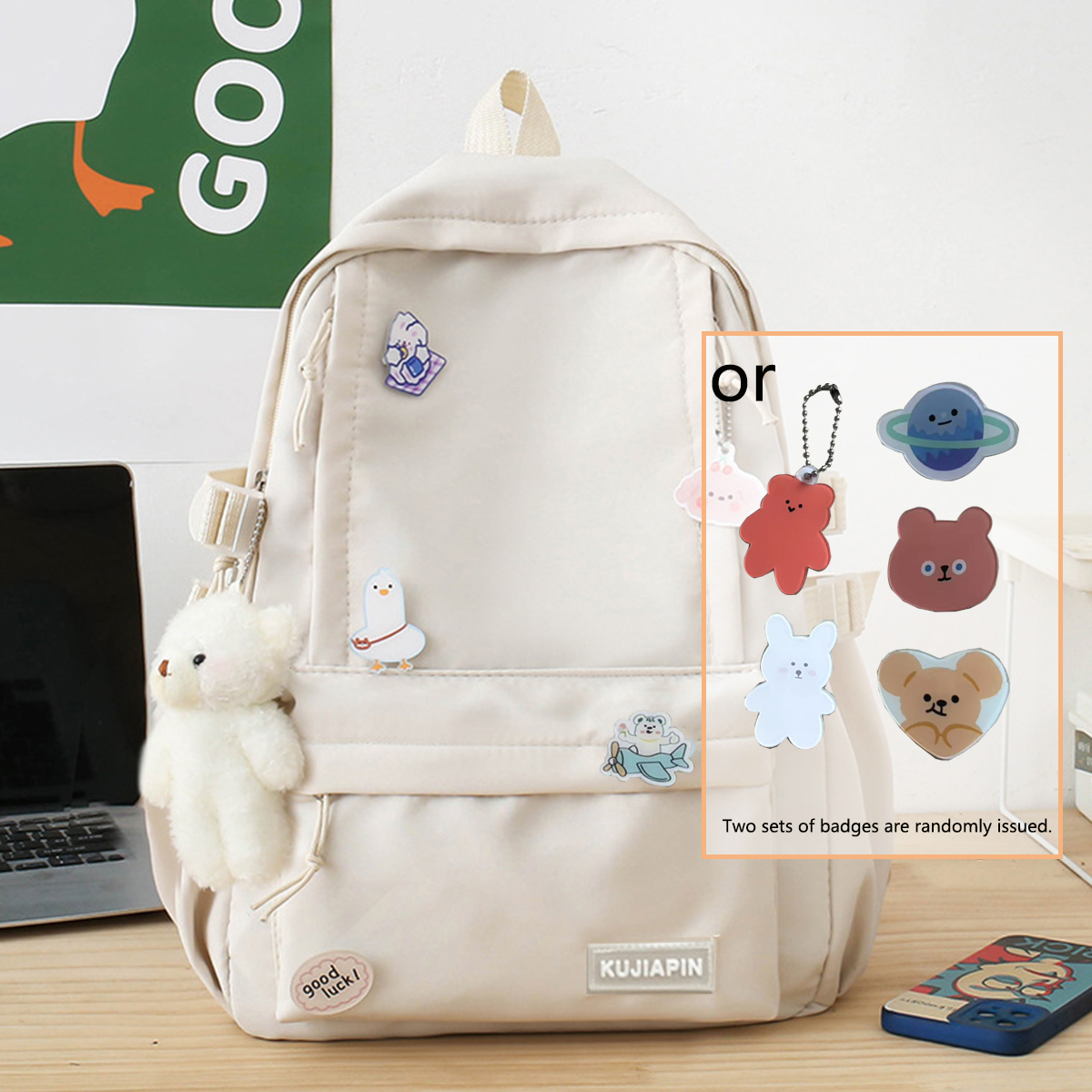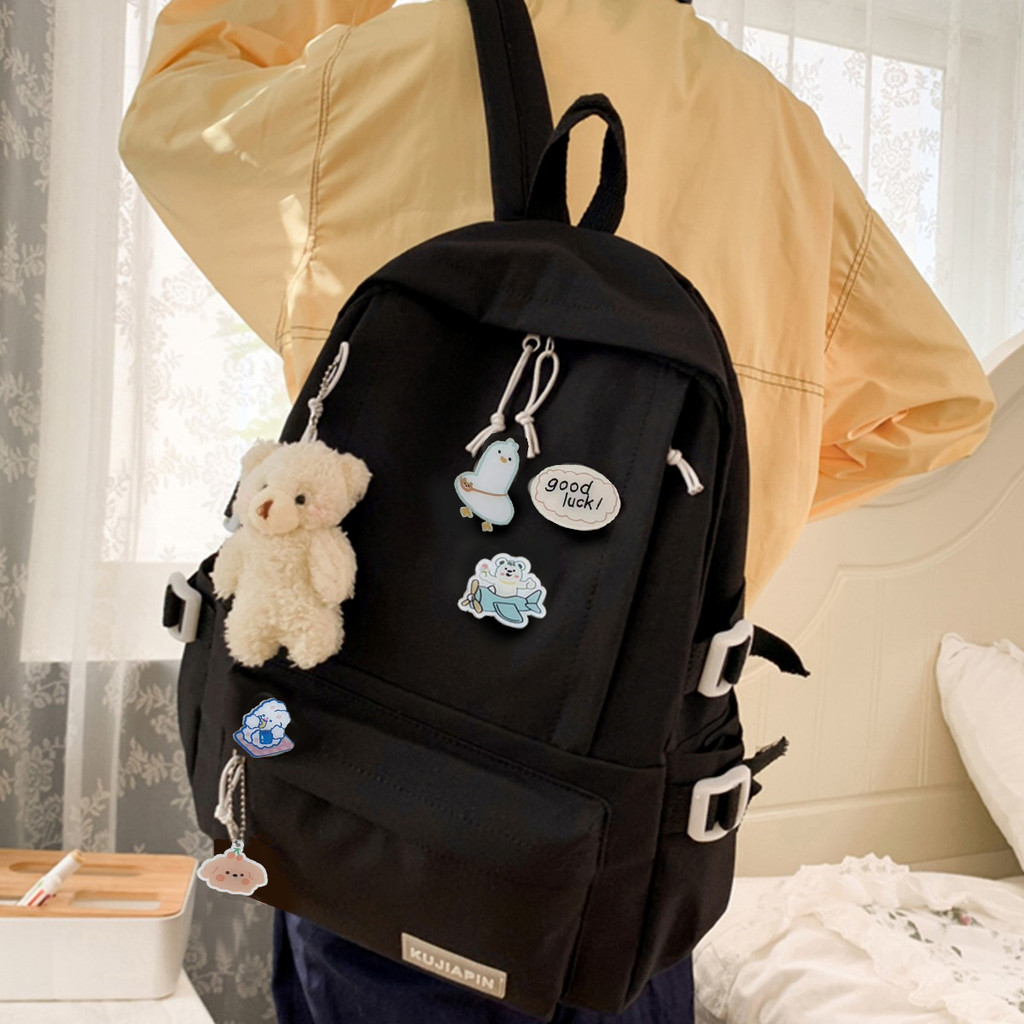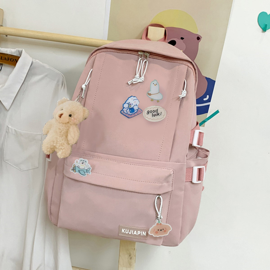 Ba lô dễ thương có mặt dây chuyền Túi đeo vai sinh viên đại học (Huy hiệu ngẫu nhiên)