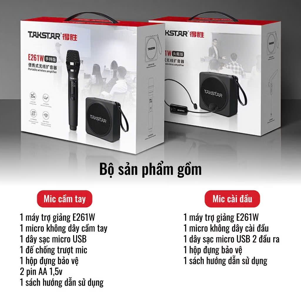 Máy Trợ Giảng Không Dây Takstar E261W GEN2 Công Suất Lớn 25W, Trang Bị Mic Cầm Tay/Cài Đầu, Chính Hãng Cao Cấp