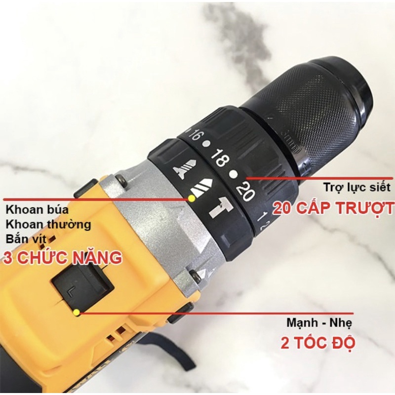 [Hoả Tốc HCM] Máy Khoan Pin DeWal Không Chổi Than Đầu 13mm Autolock 3 chức năng Có Búa