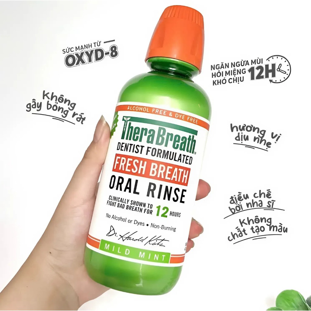TheraBreath Fresh Breath 473ml – Nước Súc Miệng Dịu Nhẹ, Không Cồn, Phù Hợp Răng Miệng Nhạy Cảm