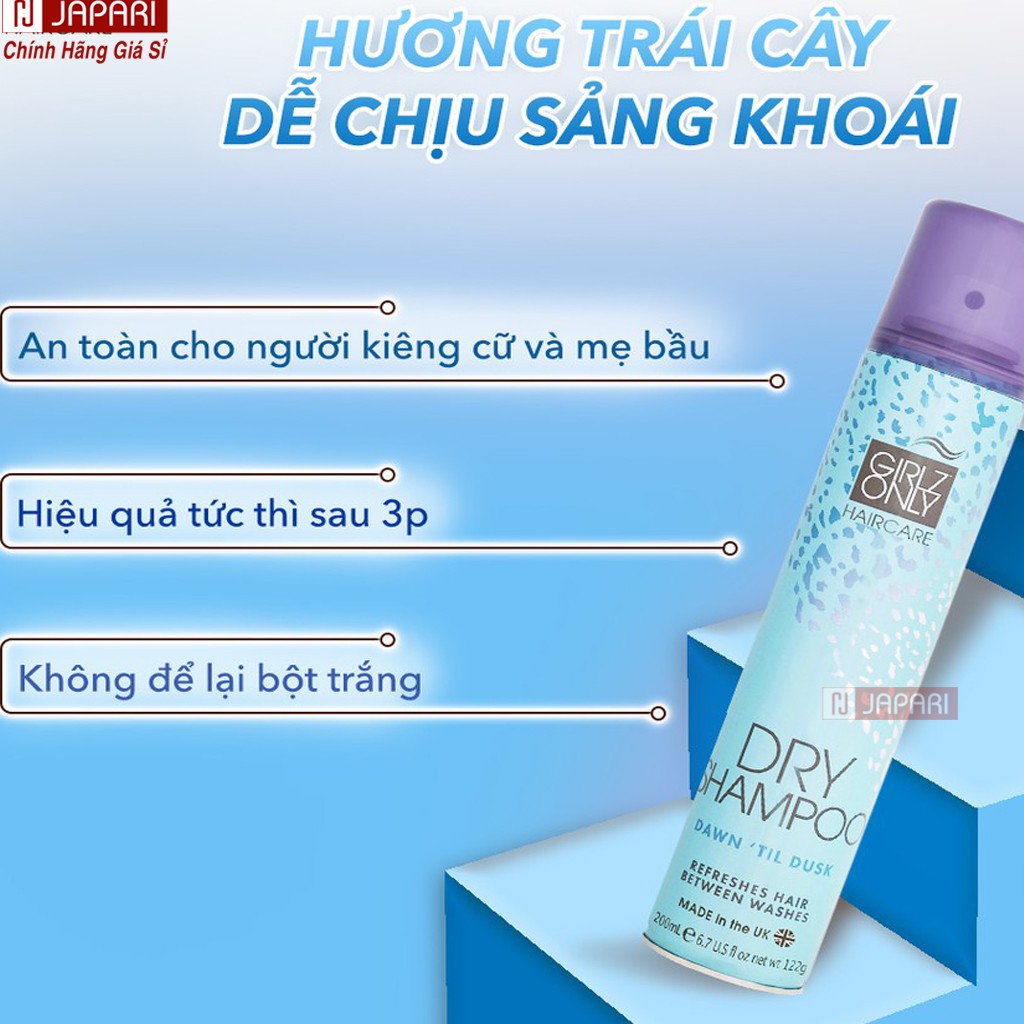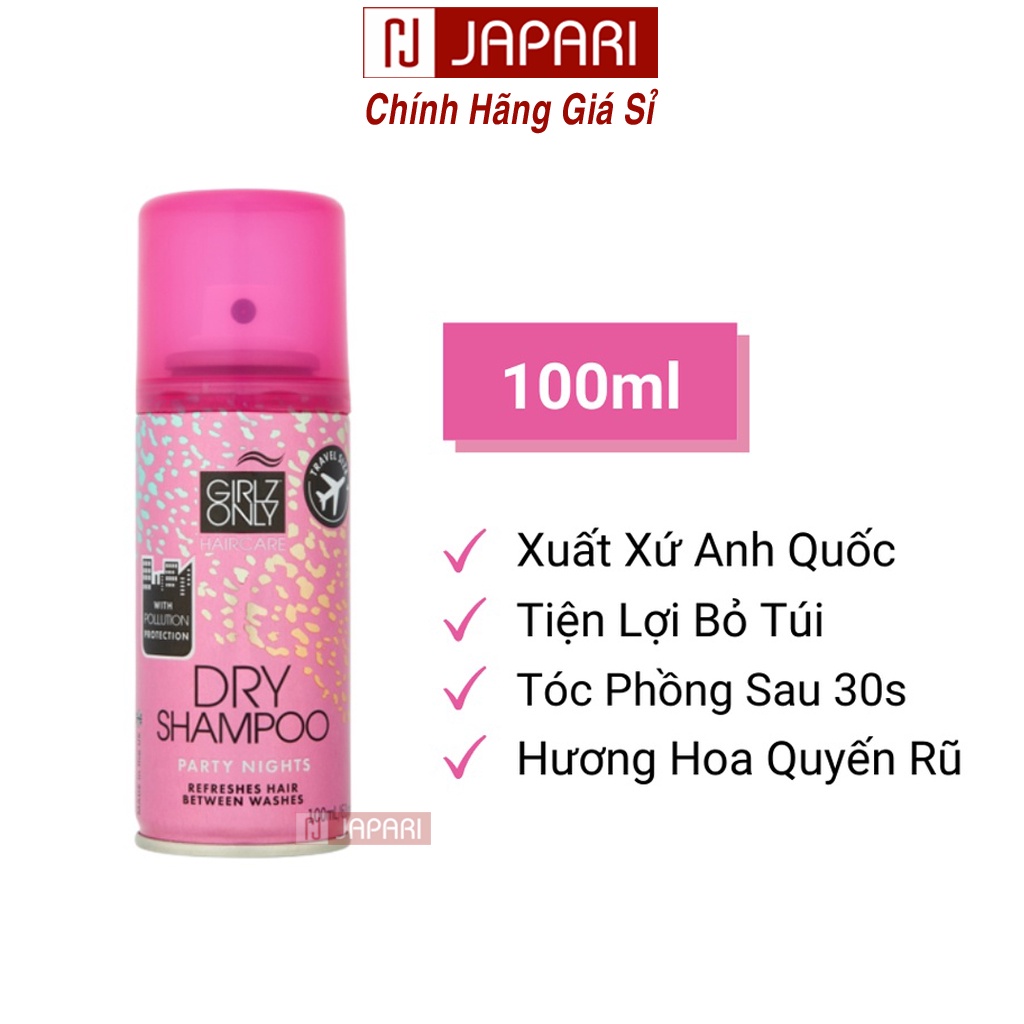 Dầu Gội Khô Girlz Only Dry Shampoo Dạng Xịt CHÍNH HÃNG- Dầu Gội Đầu Khô Girl Only Cam Phồng Tóc Hết Bết Tóc JAPARI