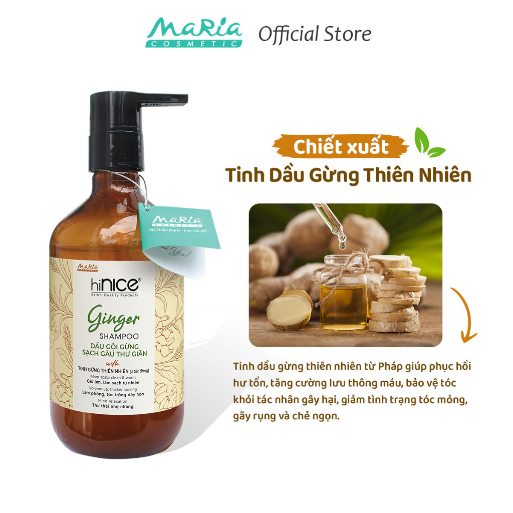 Dầu Gội Tinh Dầu Gừng Thiên Nhiên hiNICE Ginger Shampoo Hỗ Trợ Giữ Ẩm, Sạch Gàu Da Đầu