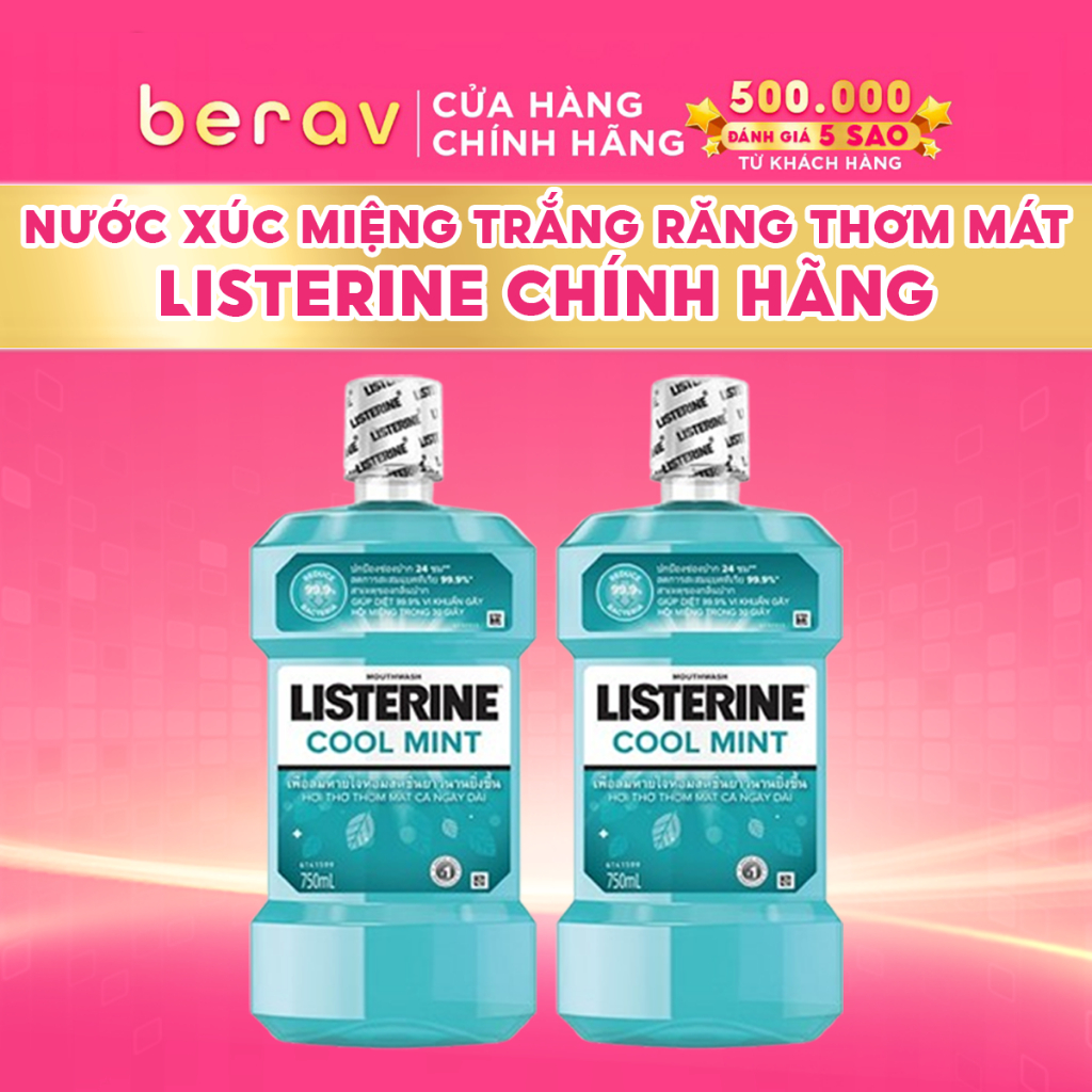 Bộ 2 Chai Nước Súc Miệng Listerine Diệt Khuẩn, Giữ Hơi Thở Thơm Mát Listerine Coolmint Mouthwash 750ml/Chai