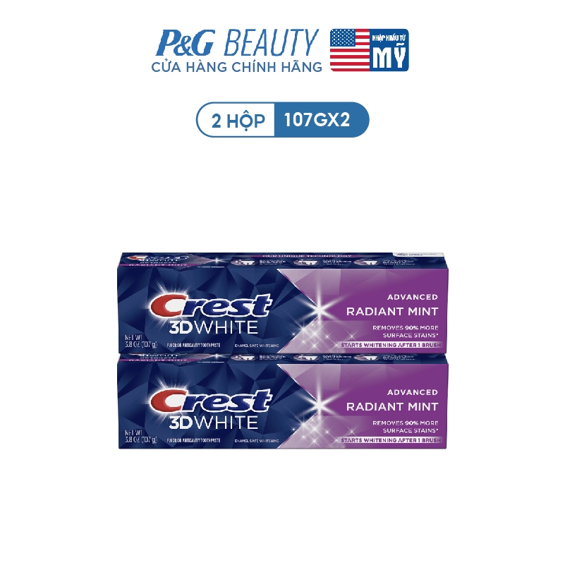 Combo 2 tuýp Kem đánh răng CREST 3D White Radiant Mint (2x93g) trắng sáng vượt trội tận gốc - Mỹ