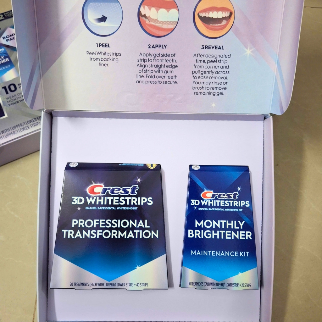 [SET 7 GÓI ] Miếng dán trắng răng Crest 3D White - Răng trắng sáng, an toàn cho men răng [Chính Hãng USA]