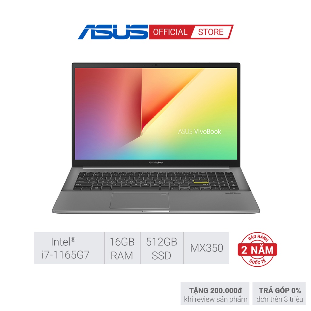 Laptop Asus S533EQ-BQ429W i7-1165G7/16GB/512GBSSD/MX3502GB/15.6"FHDIPS/FP/Win11/Đen