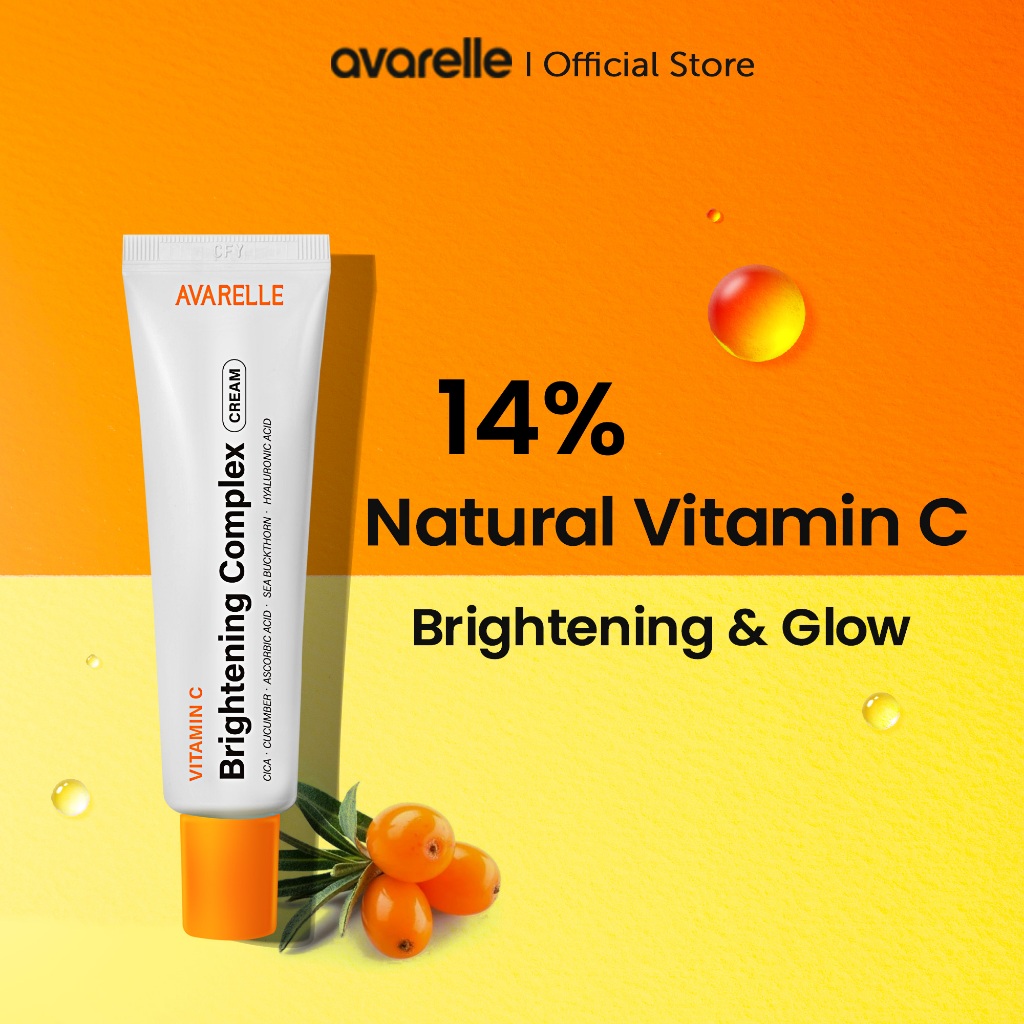 Avarelle Vitamin C Cream (30ml) Serum làm sáng da mặt và Hyaluronic Acid Dưỡng ẩm & CICA cho mụn trứng cá, vết thâm