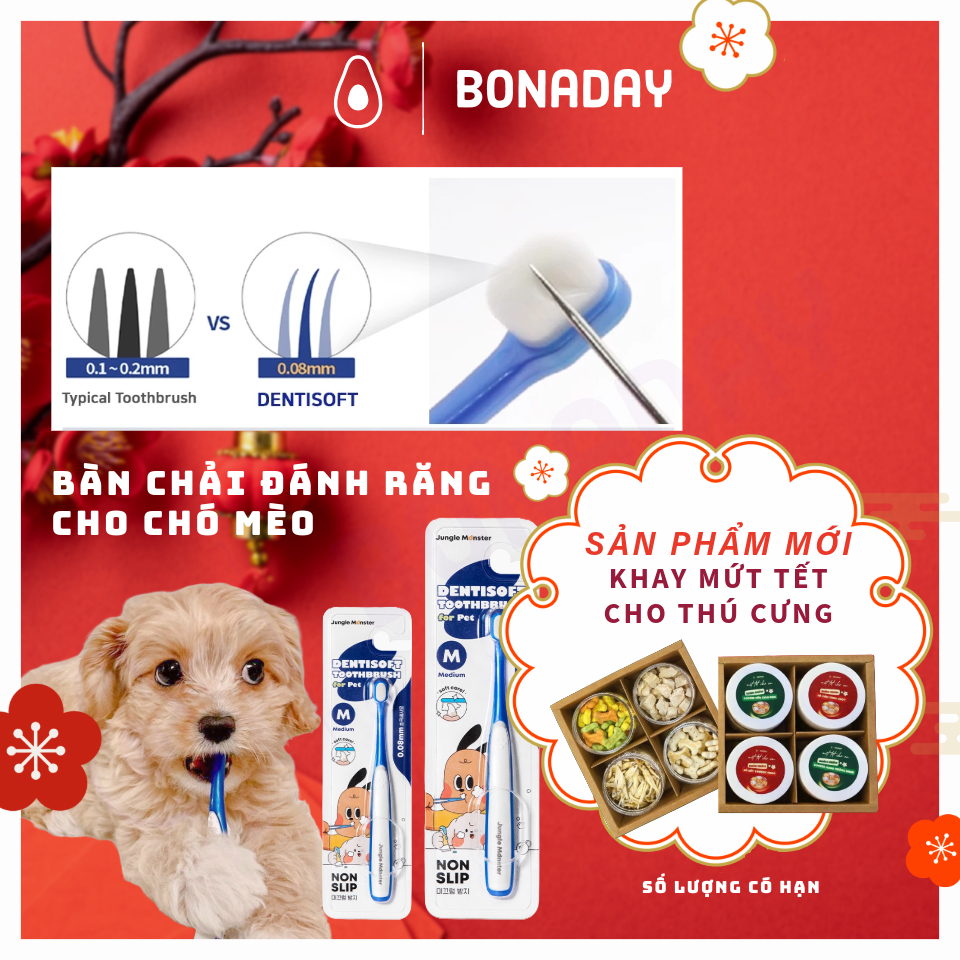 BÀN CHẢI ĐÁNH RĂNG SIÊU MỀM CHO CHÓ MÈO DENTISOFT JUNGLE MONSTER, BONADAY PETS, không gây kích ứng