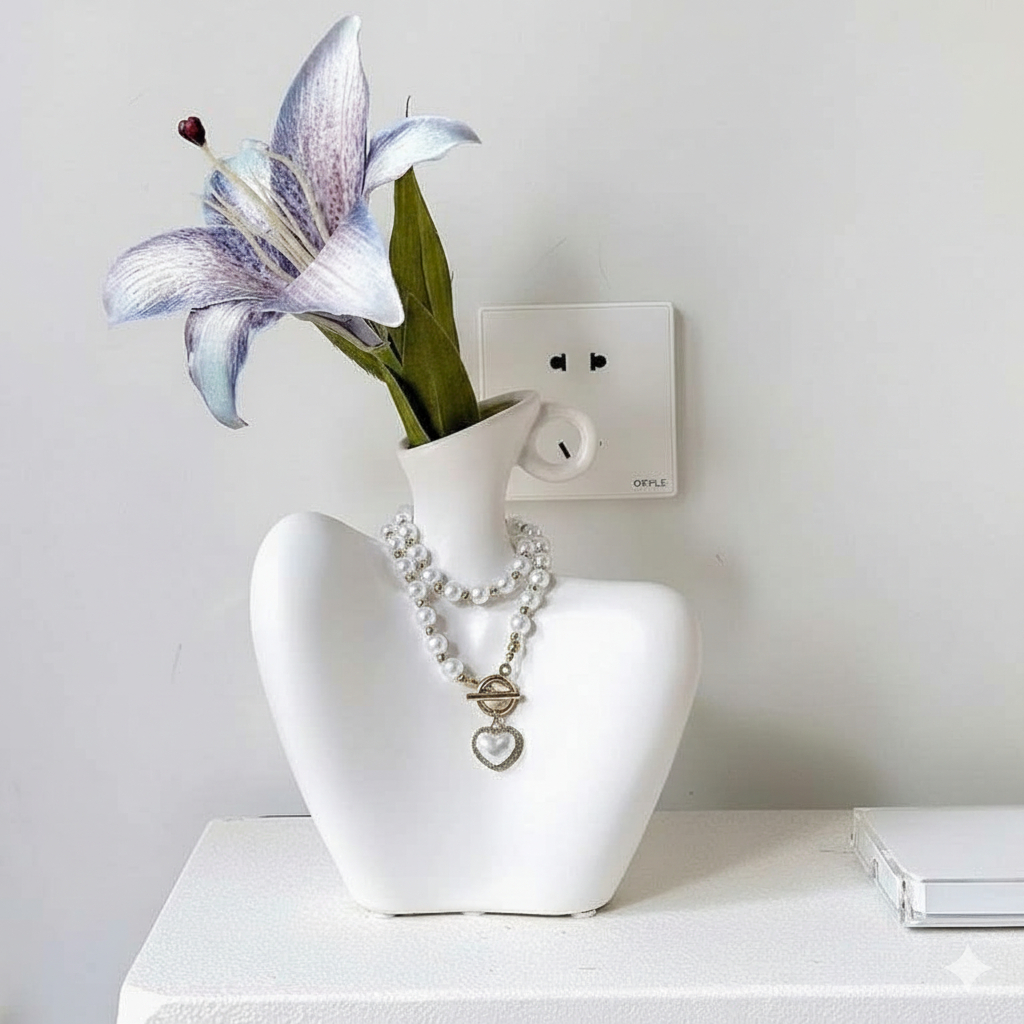Bình hoa gốm sứ Bát Tràng men mát, dáng cách điệu cô gái phong cách cổ điển, sang trọng Gốm ho Chi Mây