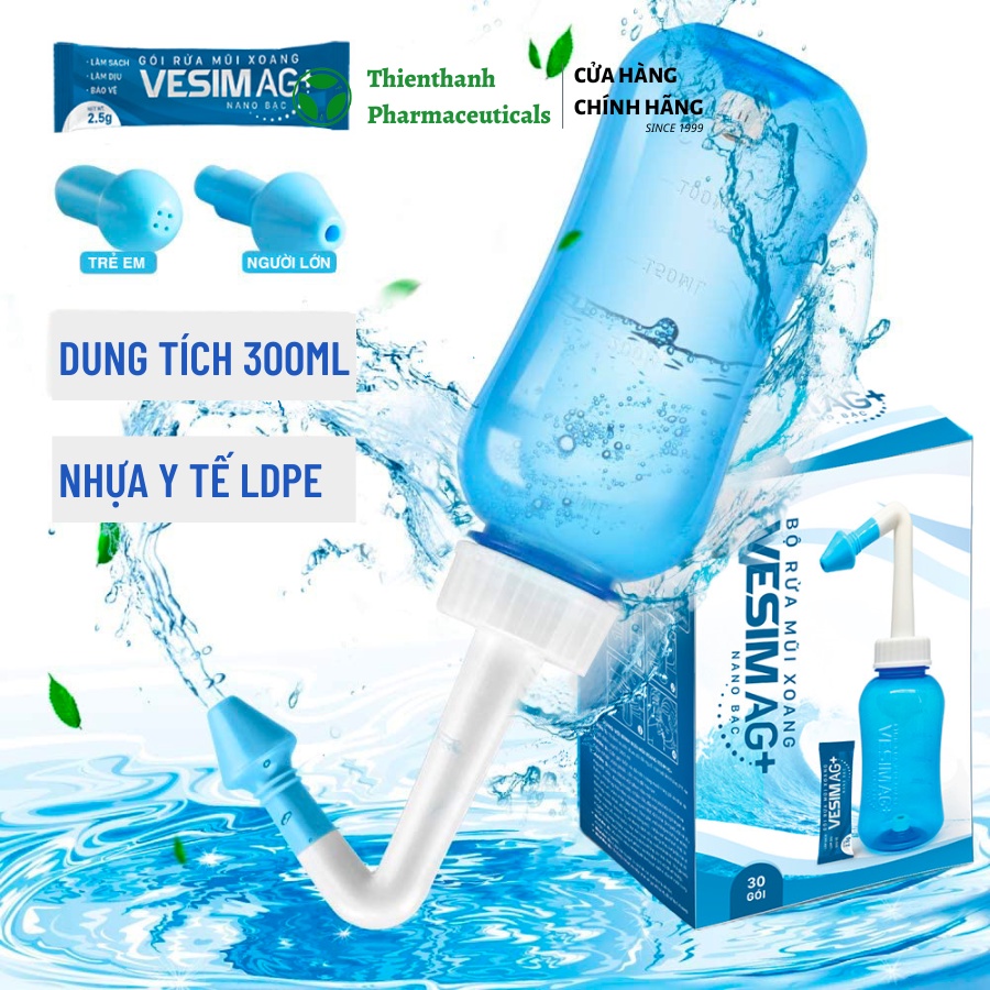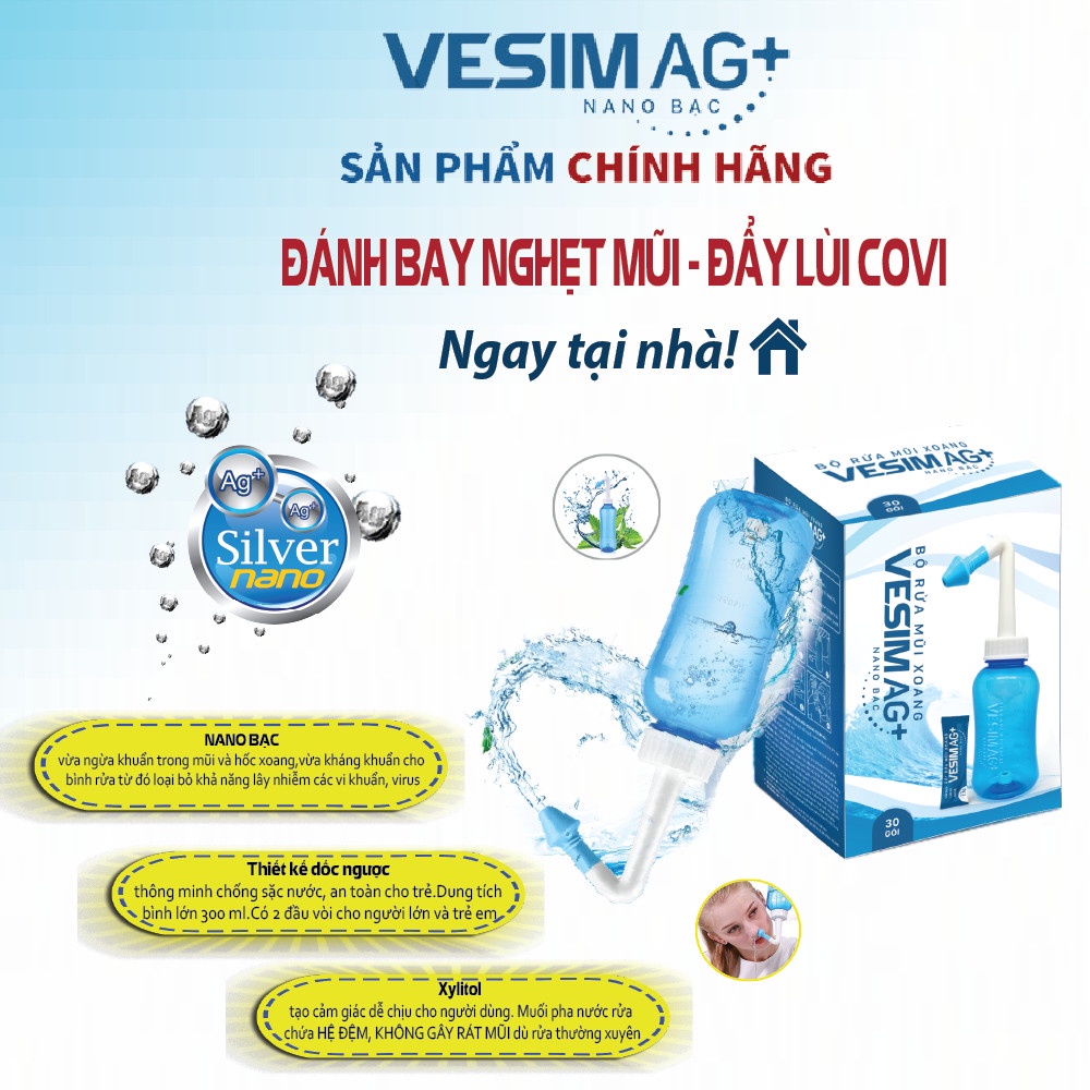 Bình rửa mũi xoang VESIM Ag+ với gói muối rửa mũi Nano Bạc - Vệ sinh mũi phòng ngừa viêm xoang