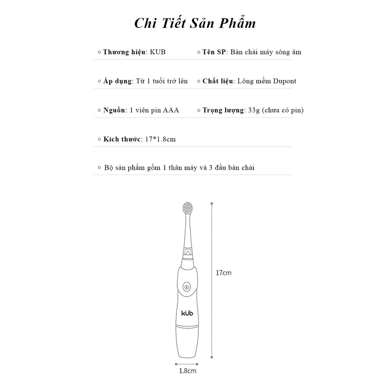 Bàn Chải Điện Đánh Răng Rung Siêu Âm Cho Bé - KUB
