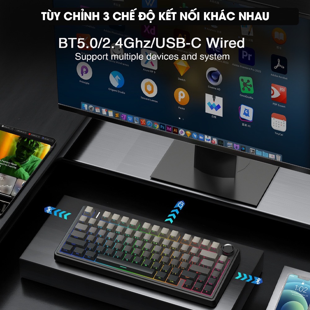 Bàn Phím Cơ AULA F75 PRO - Reaper switch ( Hotswap , 3 Mode Type-C & không dây 2.4G & Bluetooth)