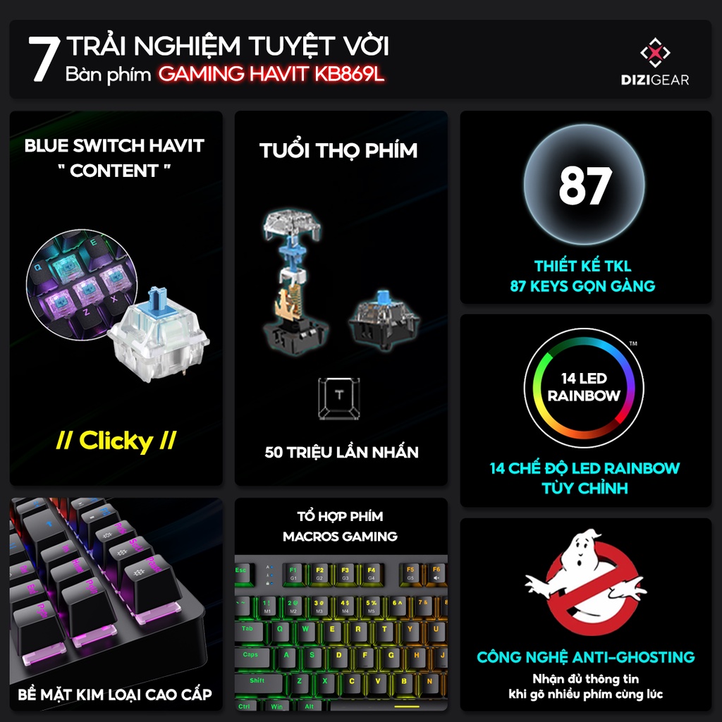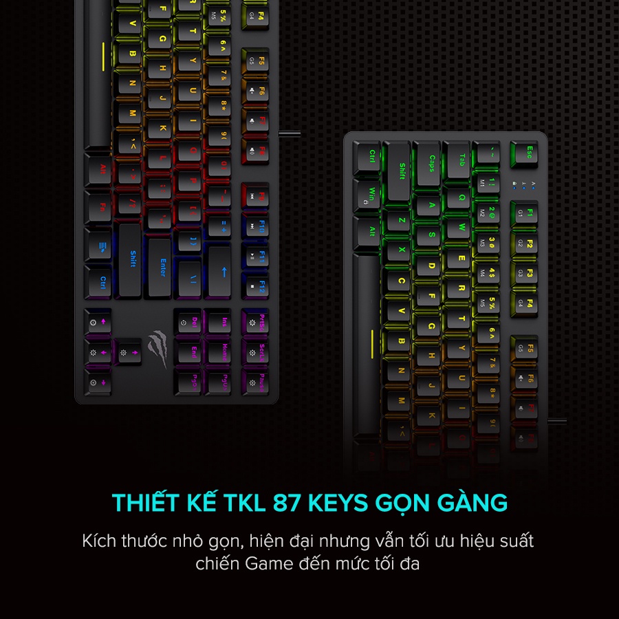 Bàn Phím Cơ Gaming HAVIT KB869L, 87 Phím, 14 Chế Độ Led Rainbow - Chính Hãng BH 12 Tháng Dizigear