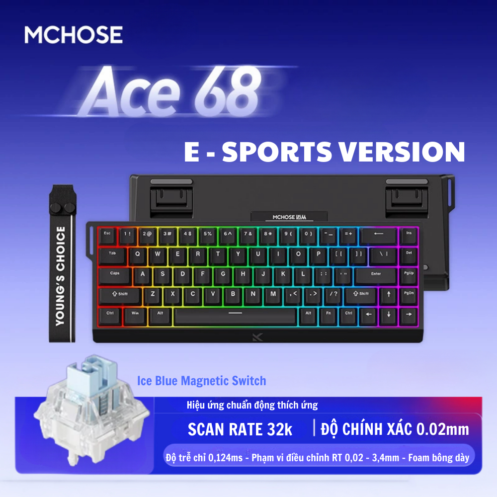 Bàn Phím Cơ Gaming HE Mchose Ace68 Esports - Rapid Trigger - Layout 68% - 8K Polling Rate - Có app tuỳ chính - Type C