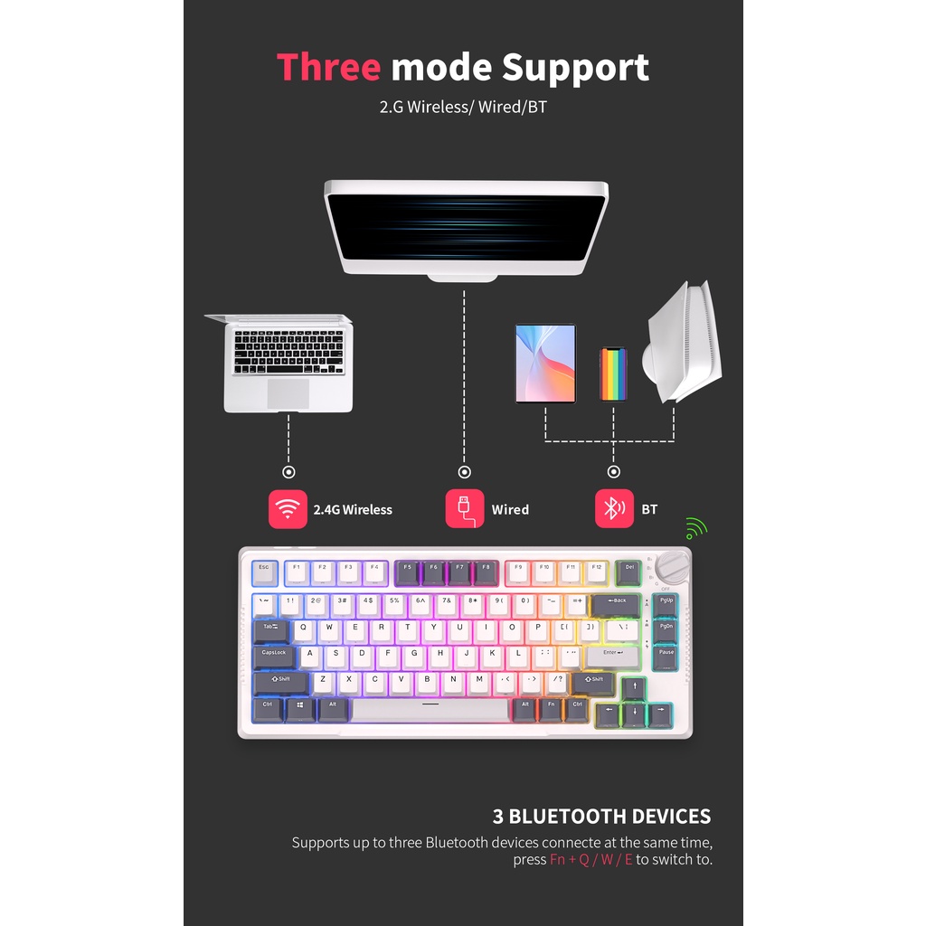 Bàn Phím Cơ RK H81 RK Royal Kludge 81 Cấu Trúc Ba Chế Độ Không Dây Bluetooth 2.4G 80%