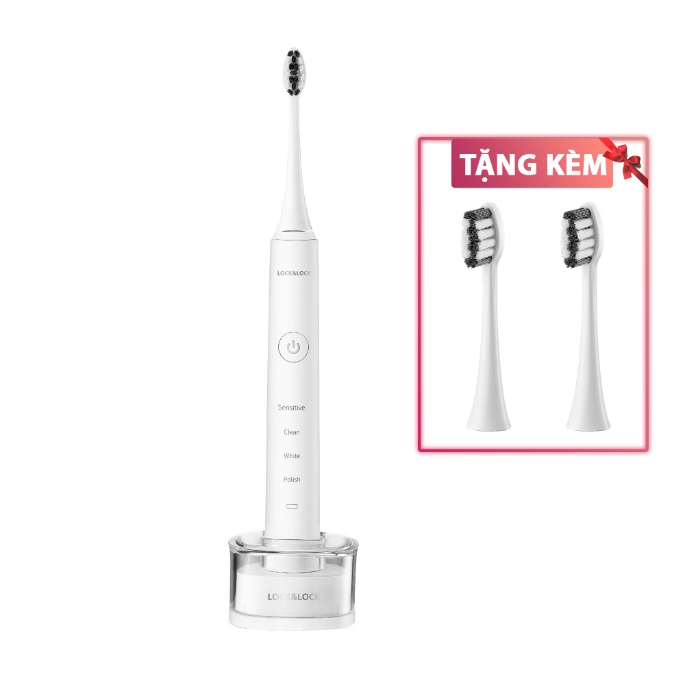 Bàn chải điện LocknLock ENR346 sạc không dây, chống nước, đèn led thông minh kèm 2 đầu chải - K-MALL