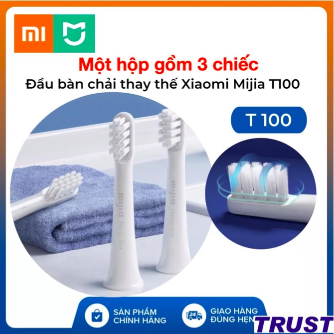 Bàn chải điện Xiaomi Mijia T100 (pin sạc) va Bộ 3 Đầu bàn chải T100 - IPX7 - Bàn Chải Đánh Răng