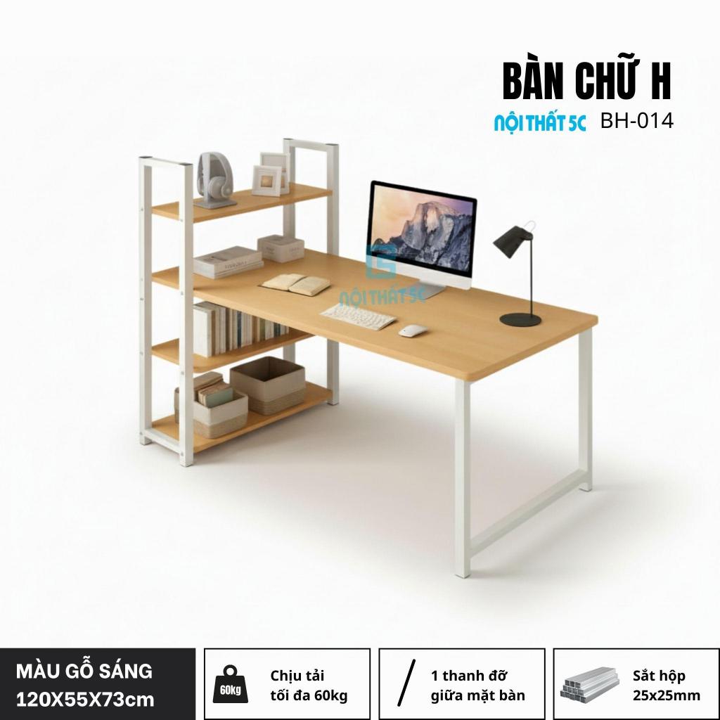 Bàn làm việc, bàn học Nội Thất 5C H-Table, khung sắt 25x25mm kèm giá sách 4 tầng sơn tĩnh điện chịu lực cao, mặt gỗ MDF