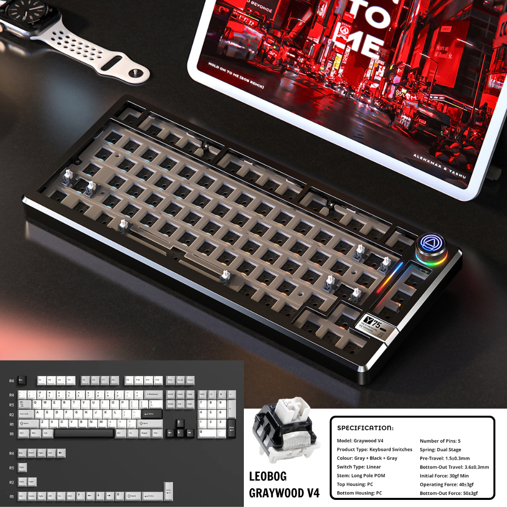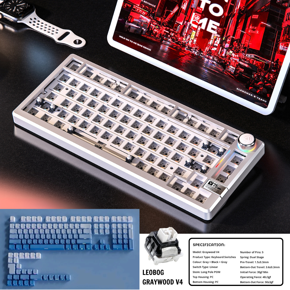 Bàn phím cơ nhôm Anode không dây YINDIAO Y75 Pro - Led RGB - 3 mode kết nối - Hot-swap 5 pin - APP - Mạch xuôi