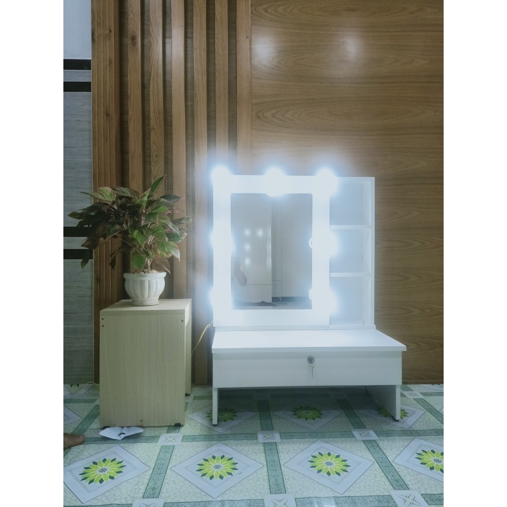 Bàn trang điểm bệt 70/trượt/led/trắng