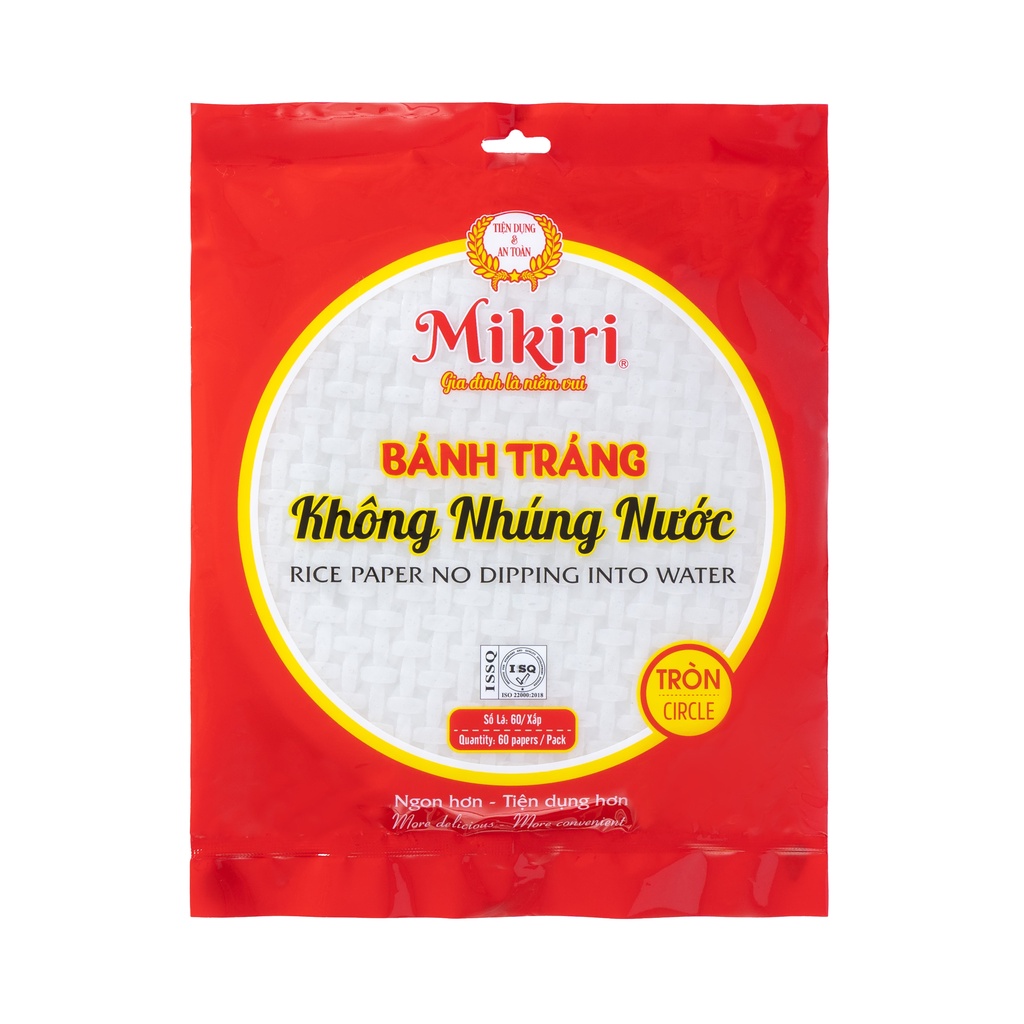 Bánh Tráng Tròn Không Nhúng Nước Mikiri – Bánh Tráng Mỏng Dẻo, Không Gãy Rách, 60 Lá Tiện Lợi 220gr