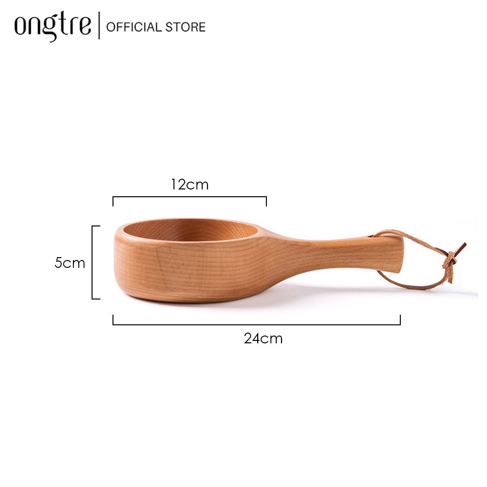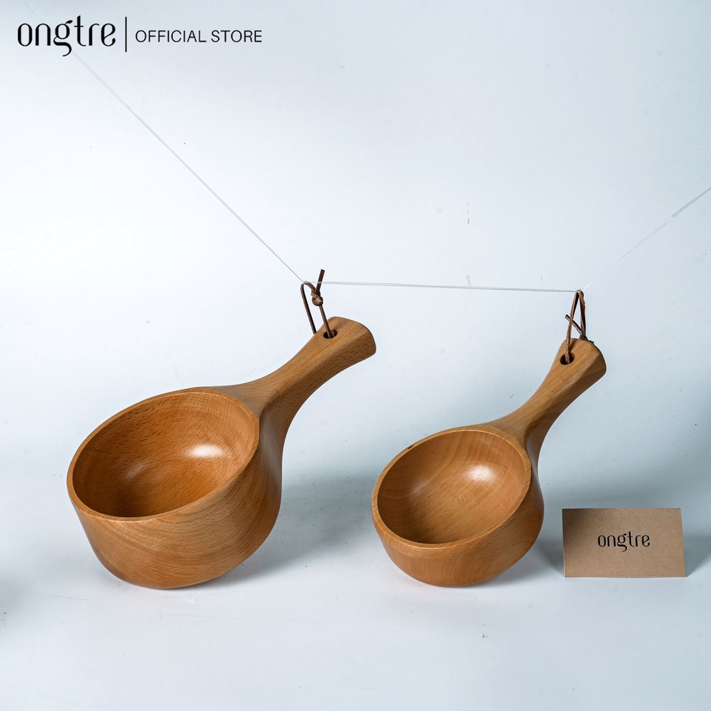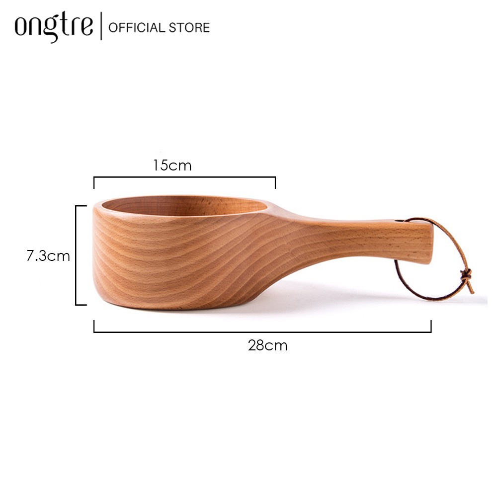 Bát gỗ tự nhiên nguyên khối ONGTRE cao cấp đựng Salad có tay cầm