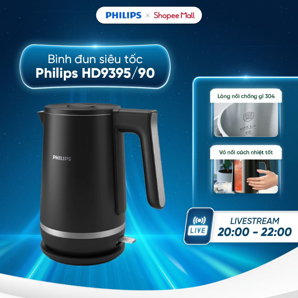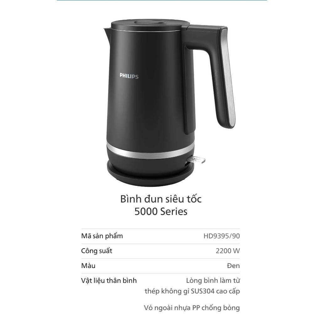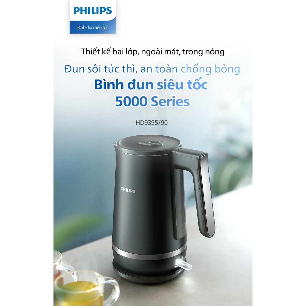 Bình đun siêu tốc Philips 1.7 lít HD9395/90 - Công suất 2200W - Bình đun hai lớp có lớp cách nhiệt