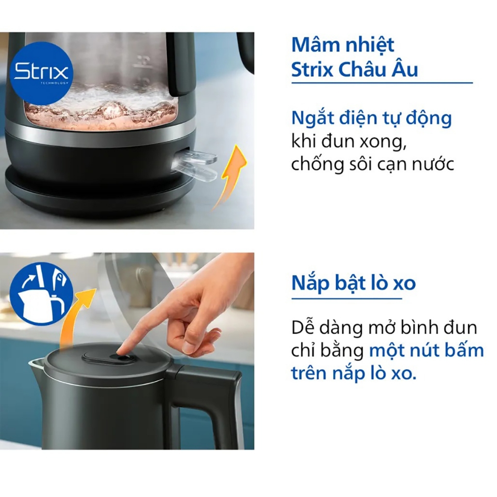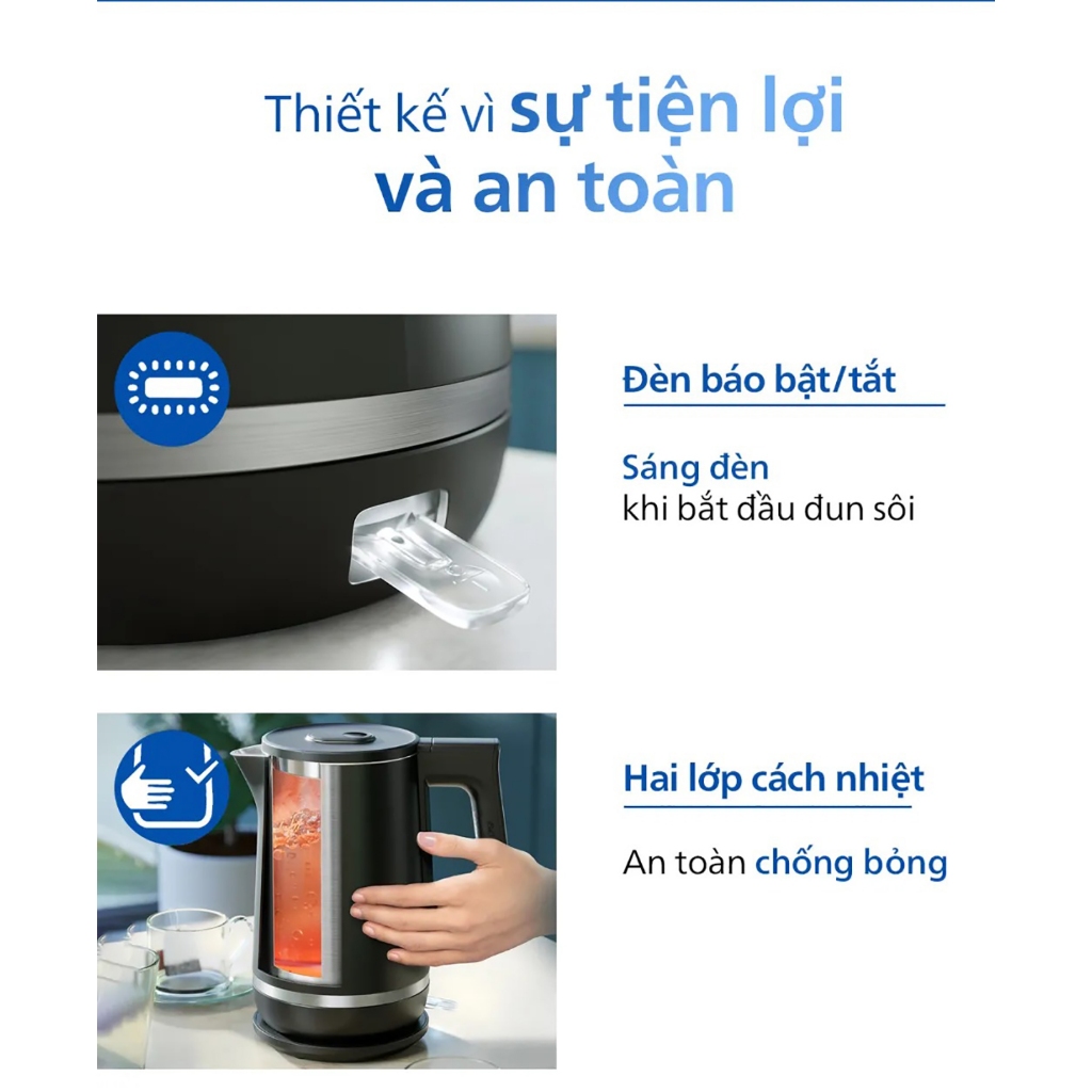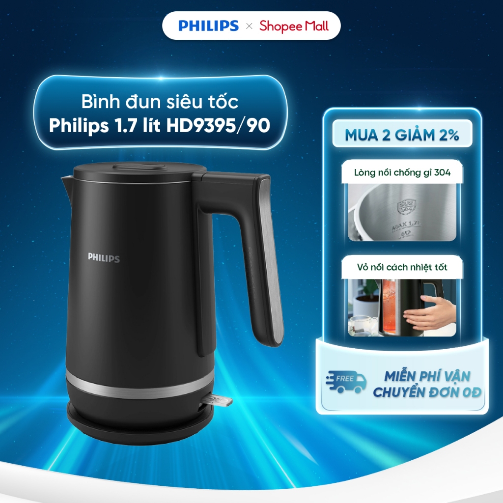 Bình đun siêu tốc Philips 1.7 lít HD9395/90 - Công suất 2200W - Bình đun hai lớp có lớp cách nhiệt