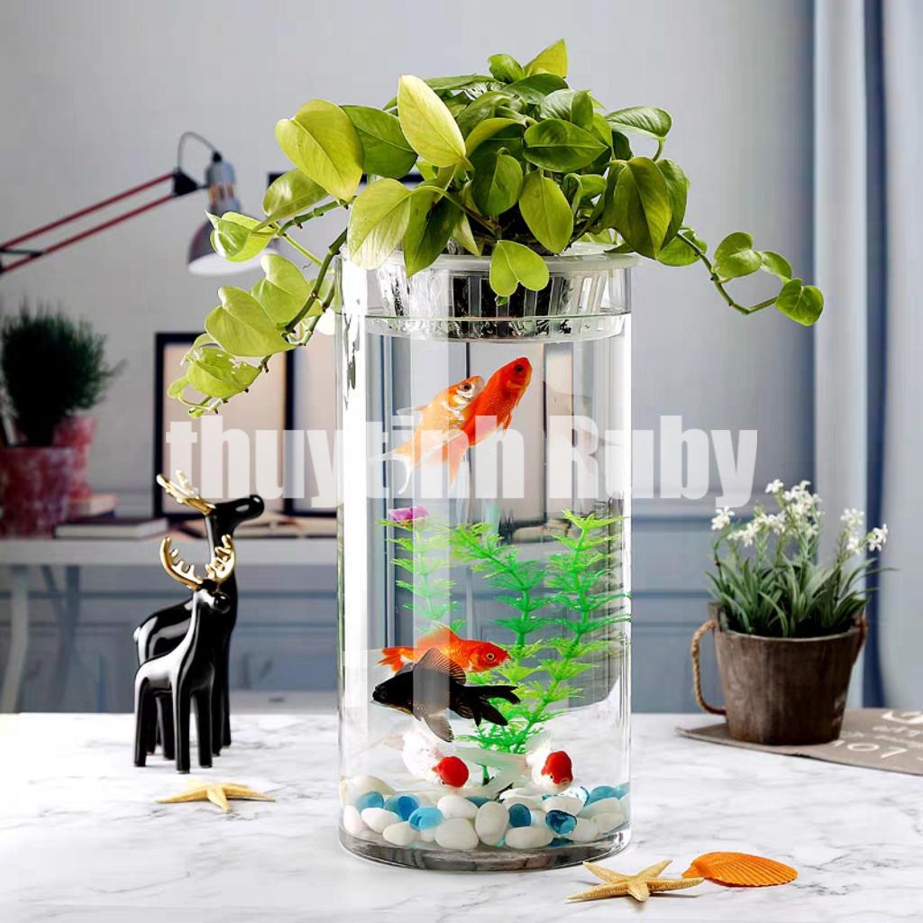 Bình bông lọ hoa thủy tinh trụ - bể cá mini, hồ cá nhỏ để bàn, chậu cây thủy sinh